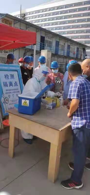 三是集中檢測,排查疫情風險。針對部分外地來淮務工人員核酸檢測難的問題,特邀人民醫院檢測中心到施工現場對40余名外來務工人員進行集體核酸檢測。