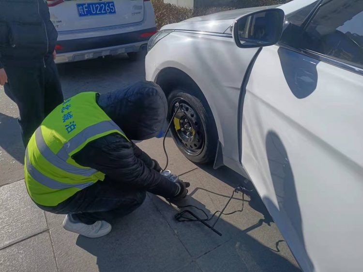 近日,市人民醫(yī)院停車場班組在日常維持場內(nèi)交通中發(fā)現(xiàn)一輛即將駛出停車場的白色轎車左前輪胎爆胎,嚴重影響行車安全,隨即引導(dǎo)車輛靠邊停車,詢問后得知這一對駕車來醫(yī)院探望病人的年輕夫妻竟對爆胎的事情全然不知,駕駛員小伙子是新手也不知道如何更換備胎。班長吳懷松同志當機立斷,從黨員愛心服務(wù)站中拿出千斤頂和充氣泵,指揮人員以最快的速度更換了備胎、補足了胎壓,并叮囑他們到最近的維修點補胎或更換新輪胎,保證行車和人身安全。