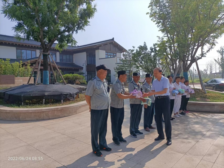 6月18日上午,集團公司黨委委員副總經理唐世軍一行來到朔西湖景區現場開展“送清涼慰問到一線 凝心聚力鼓干勁”活動,給一線員工送來防暑降溫品,為大家撐起一把“清涼傘”,送上一絲“清涼風”。