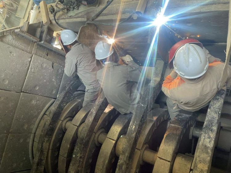此次設(shè)備搶修攻堅(jiān)戰(zhàn)可謂是時(shí)間緊、任務(wù)重,由于空間狹小,不僅給焊接工作帶來(lái)極大的難度,而且危險(xiǎn)性極大,需要長(zhǎng)時(shí)間保持一個(gè)姿勢(shì),有的員工全身僵硬仍在咬牙堅(jiān)持,再加上夜間施工能見(jiàn)度低,精神易疲憊等等諸多不利因素也給整個(gè)搶修工作帶來(lái)了極大的困難!