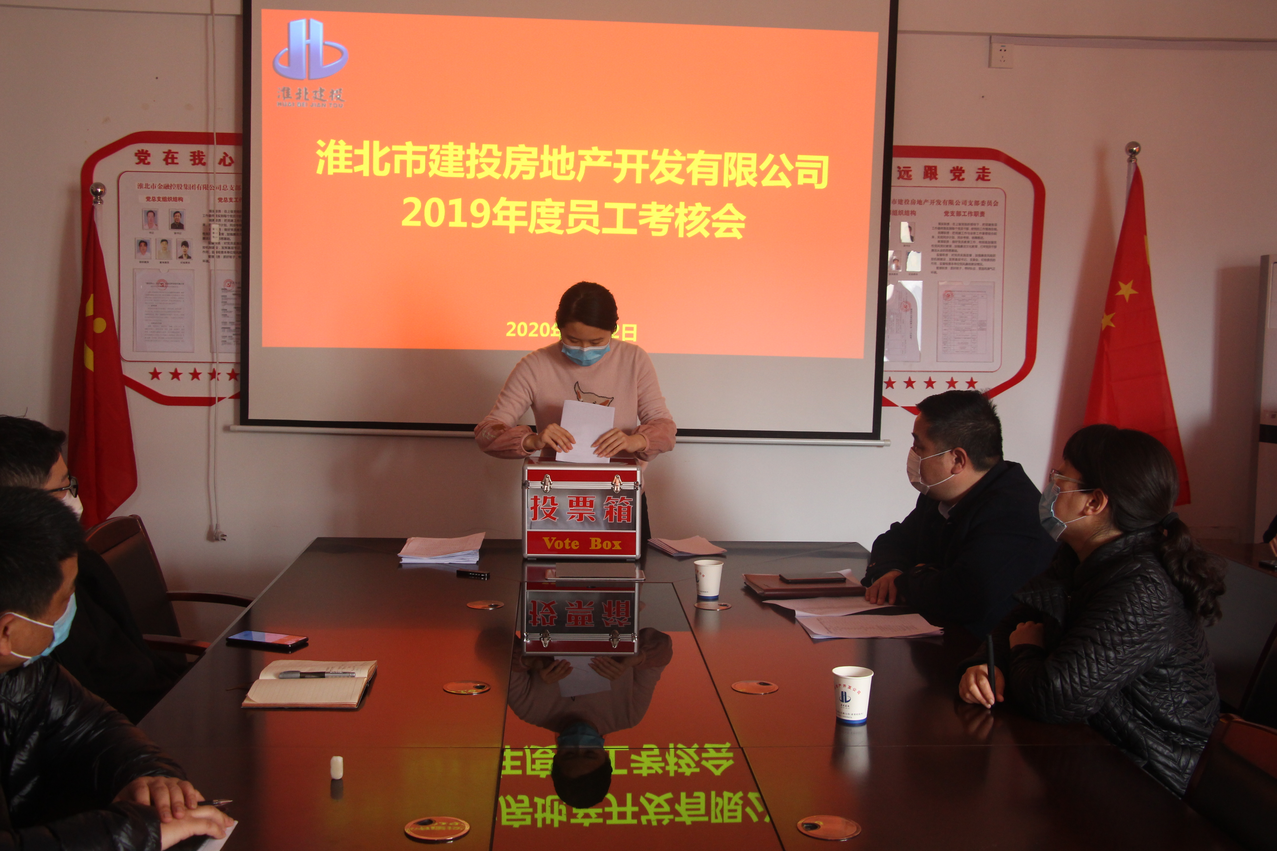 3月12日上午,房地產公司在公司四樓會議室召開2019年度員工考核大會,公司全體員工參加會議。
