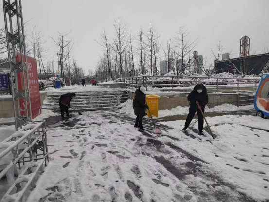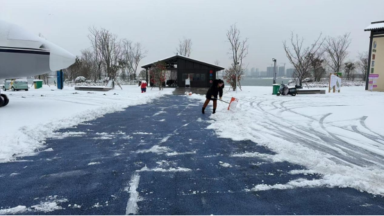 自我市本次降雪以來,在市里啟動三級響應后,南湖公園公司第一時間響應號召,做好應急處理,加強園區巡邏,對園區內的游客進行安全勸離,同時針對園區情況開展掃雪除冰行動,對景區內橋梁、道路、木棧道安排人員進行清掃,防止冰凍安全隱患,安排24小時人員值班,不折不扣做好應對雨雪冰凍天氣各項工作,出動人員100余人次,使用車輛3輛,使用化雪鹽15袋,共計清掃園區道路10公里。