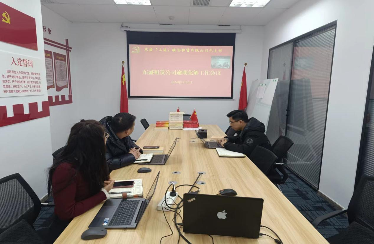 為有效控制公司業務風險,東盛租賃公司組織業務人員對現有存量業務進行了全面梳理和排查,并成立逾期項目化解小組,積極做好存量項目風險的防范和管控。2024年2月26日,東盛租賃公司總經理、逾期項目化解小組組長何曉璐就目前風險項目組織召開了逾期化解工作會議,專門研究部署風險化解事宜。