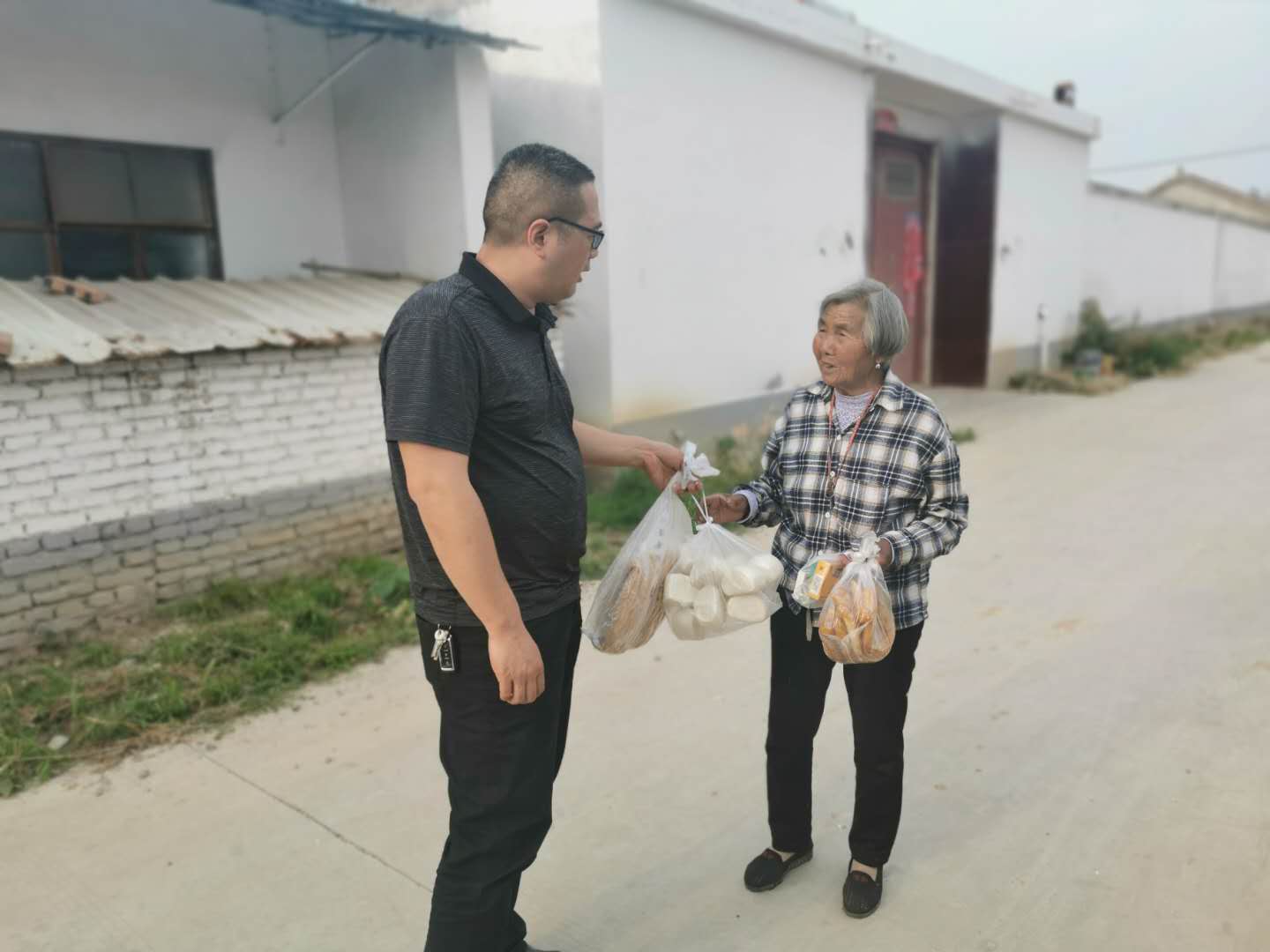 2020年5月21日下午,保障房公司幫扶小組來到火神廟村孫嚴玲老人家中,對老人的身體健康、疫情防護等情況進行了慰問,了解老人的家庭收入情況、“兩不愁、三保障”及飲水安全問題,同時為老人送去了口糧和即食物品,并囑咐老人注意個人衛生、宅院消毒及防暑降溫,順利渡過炎夏酷暑。