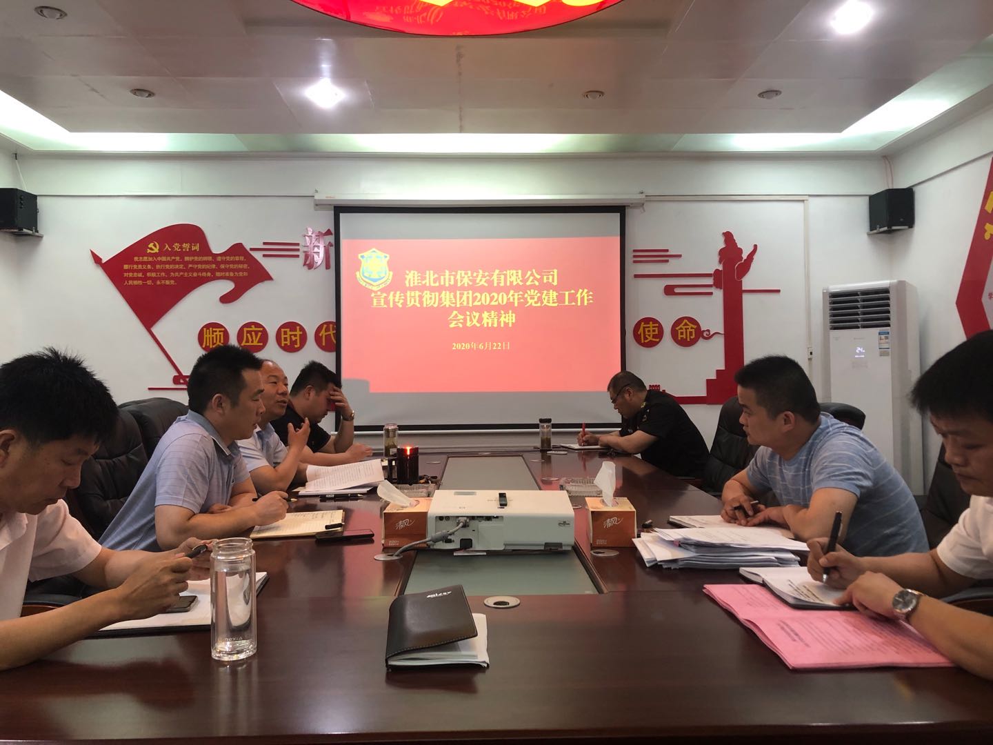 6月22日下午,保安公司黨支部在公司三樓會議室召開貫徹學習集團公司2020年度黨建暨黨風廉政建設工作會議精神,保安公司中層以上管理人員參加了會議。