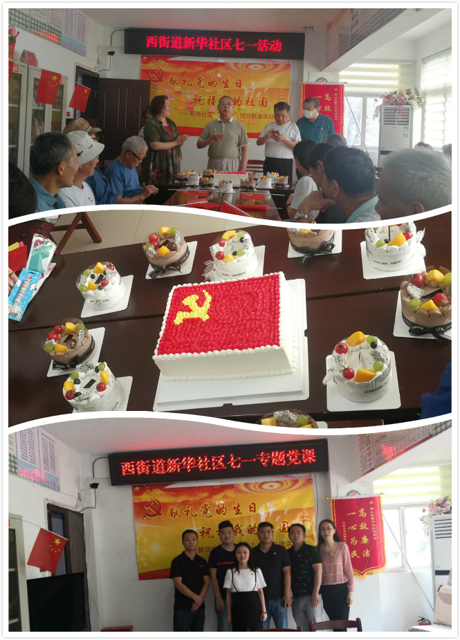 商貿公司黨支部黨員與新華社區共建開展以“獻禮黨的生日,祝福我的祖國”為主題的慶七一主題活動,黨員親筆書寫對黨和祖國的祝福,社區老黨員帶領全體黨員齊聲高唱《永遠跟黨走》,在熱烈的歌聲中大家切蛋糕,共同慶賀黨的99歲生日,大家邊吃著蛋糕,邊說著今天的幸福生活。