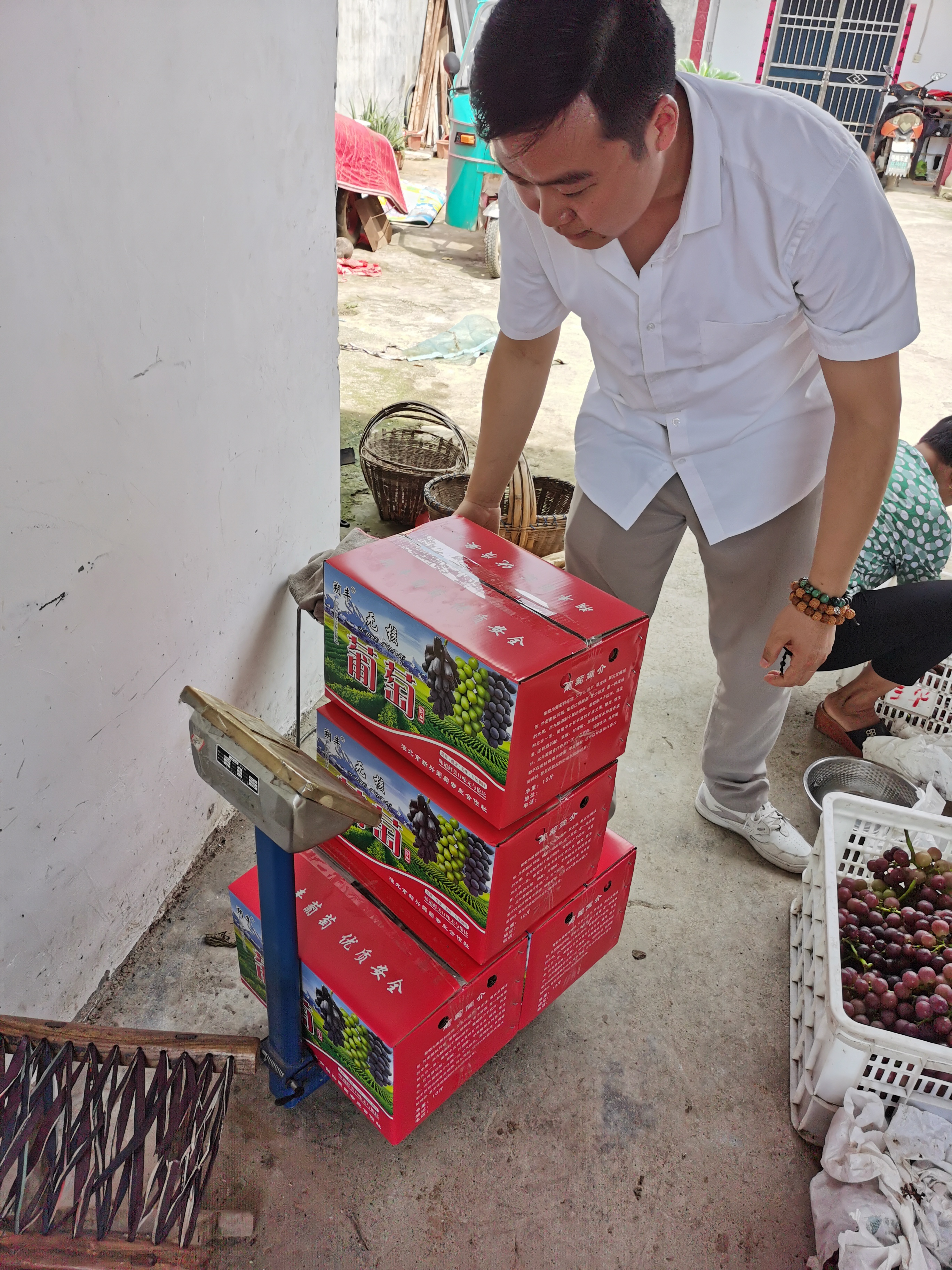 在了解到幫扶戶家中種植的葡萄產量在雨水影響下,減產損失較重,直接經濟損失大約2萬元,支部副書記趙瑩瑩現場自費購買70多斤,并聯系幾家水果采購商洽談銷售問題。