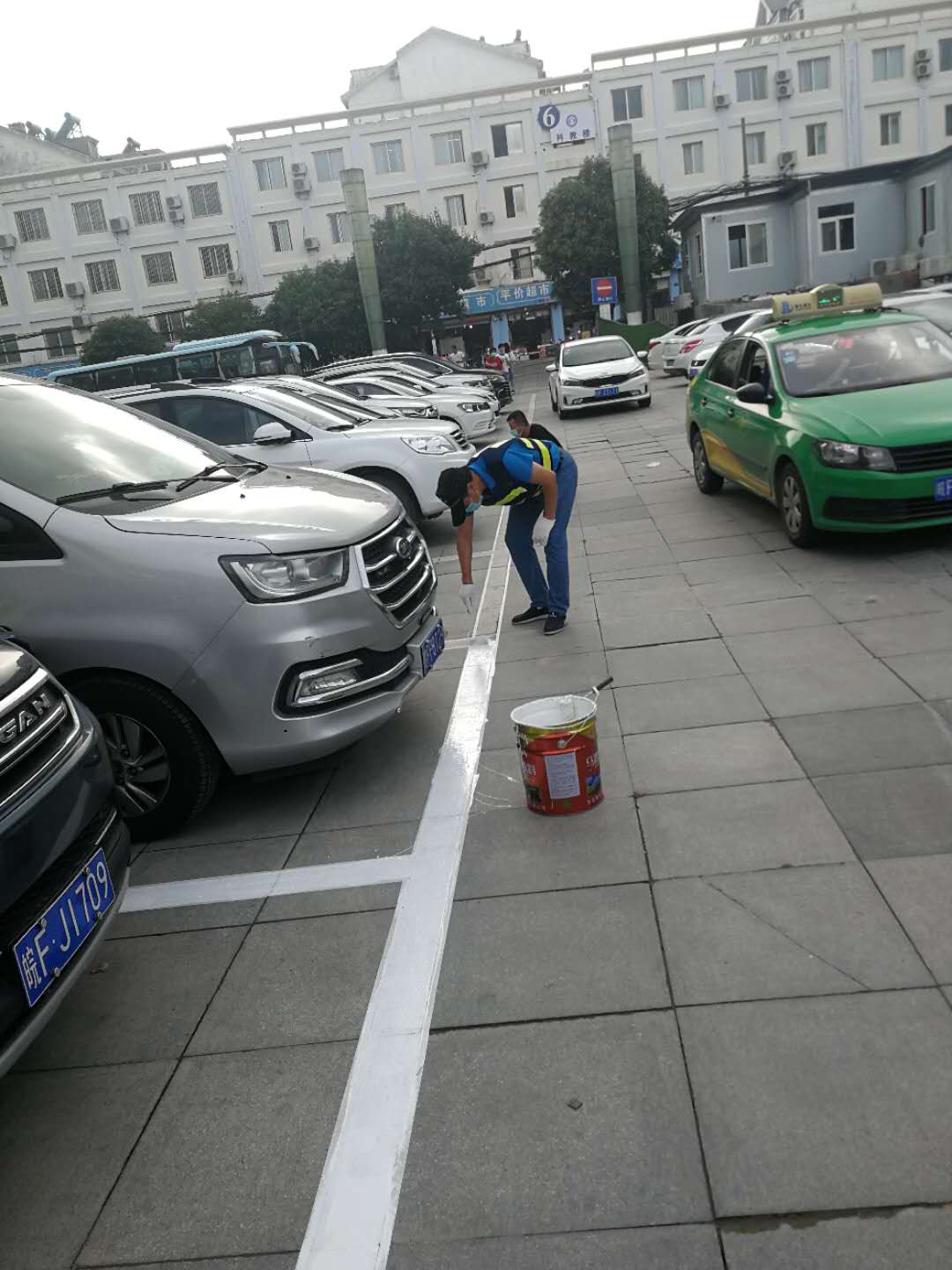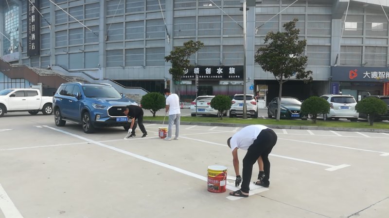 助力創建全國文明城市,城泊公司員工用汗水施劃停車泊位線