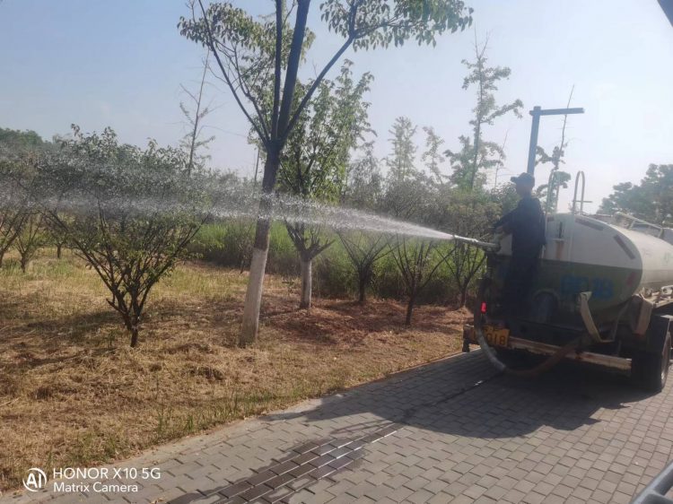 一是采取水車澆水、自動噴灌、人工灑水等多種澆灌方式,對干旱嚴重的區域重點澆灌,確保做到細澆慢灌,澆足澆透。二是更新設備借助科技力量,在綠金湖公園新增自動噴淋系統,既滿足草坪、小灌木、樹木生長的需要,又比傳統人工澆水更加省時省力,大大提高了用水效率。三是合理調整作業時間,采取每天上午提早作業,下午推遲作業的方式,避開高溫時段進行澆灌,防止出現植株灼傷現象。四是做好人員保障,準備充足的飲用水和防暑藥品,督促一線工作人員做好防護措施,避免曬傷、中暑等情況發生。