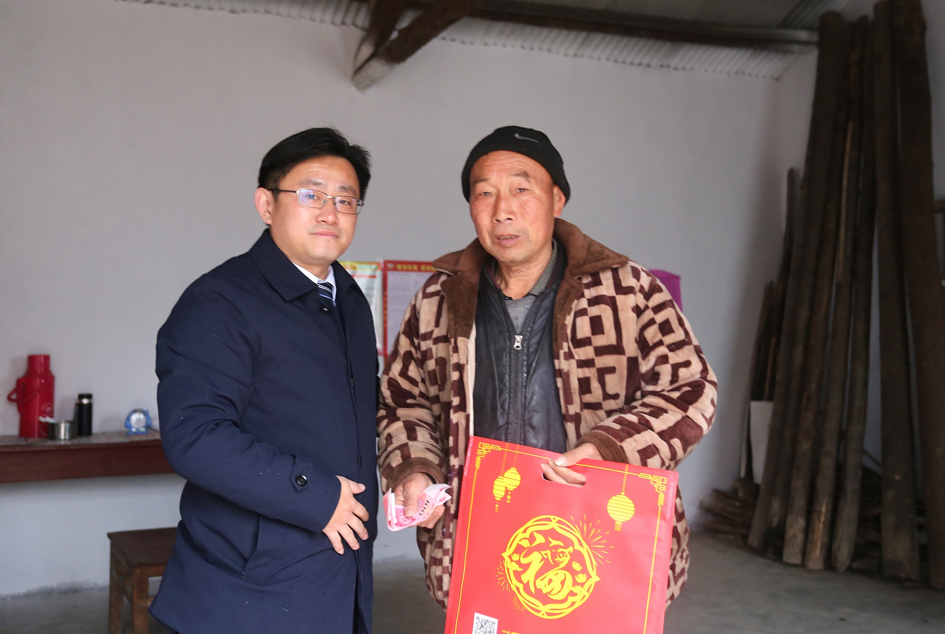 春節(jié)將至,年味漸濃。在新春佳節(jié)來臨之際,市建投集團黨委委員、副總經(jīng)理王佩劍帶領(lǐng)扶貧5組成員前往火神廟村走訪看望貧困戶丁佩久和黃傳平家庭,并為幫扶貧困戶送去春節(jié)慰問金和春聯(lián),提前送上新春佳節(jié)的問候與祝福。王佩劍每到一戶,都熱情的與他們拉家常,詳細詢問他們的身體情況、生產(chǎn)和生活現(xiàn)狀,認真傾聽他們的訴求,叮囑他們一定要保重身體,鼓勵他們健康生活、快樂勞動。