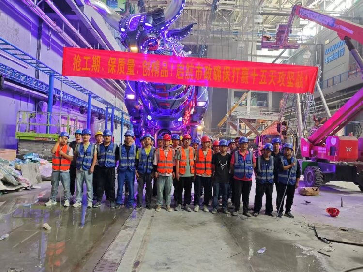 活動(dòng)現(xiàn)場(chǎng),項(xiàng)目施工團(tuán)隊(duì)整齊列隊(duì),在巨型機(jī)械裝置下莊嚴(yán)宣誓“搶工期、保質(zhì)量,創(chuàng)精品!啟航市政確保打贏十五天攻堅(jiān)戰(zhàn)!”此次攻堅(jiān)聚焦老電廠夔牛天街項(xiàng)目消防水電工程,工程完工后,將筑牢項(xiàng)目安全根基,完善基礎(chǔ)設(shè)施服務(wù),為后續(xù)參觀群眾的安全保障再加碼。