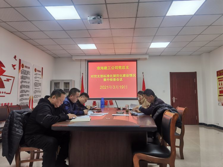 為認真貫徹落實集團公司黨委關于加強基層黨組織標準化建設有關精神,持續深入推進基層黨組織標準化建設,根據《關于開展 2020 年黨組織標準化建設評估工作的通知》要求,淮海建工黨總支于3月19日召開對黨支部標準化規范化建設情況集中檢查會議,會上對各支部的自查情況進行核查,強調要以本次評估工作為契機,結合黨史學習教育、“黨建融合提升年”等活動,全面檢視黨建工作,建立健全標準化規范化建設常態化推進工作機制。