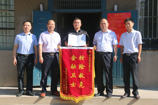 18日清晨6:30分,濉溪農(nóng)商銀行總行由于地勢低洼,加之雨勢較大,街道排水不暢,水位已達半米深,情況十分危急。農(nóng)商行領(lǐng)導(dǎo)高度注視,緊急從外調(diào)入沙袋進行抗洪搶險。關(guān)鍵時刻,淮北市保安有限公司駐濉溪農(nóng)商銀行三中隊的押運隊員們在中隊長劉軍的帶領(lǐng)下挺身而出跳入水中,奮力扛起沙袋,對銀行出入大門、金庫聯(lián)動門進行封堵。同時派駐陳體超,代亮亮、梁良、李晨晨、武成波、朱勝杰、楊海濤,劉翔兩個班組人員晝夜搶險,他們不怕臟、不怕累用水盆等工具將金庫內(nèi)的積水排出。經(jīng)過兩天一夜的奮戰(zhàn),汛情得到有效控制,挽回了重大損失,有力保障了濉溪農(nóng)商銀行正常的工作秩序。8月24日,濉溪農(nóng)商銀行的領(lǐng)導(dǎo)親自登門給公司送來錦旗,并對在抗洪搶險工作中表現(xiàn)優(yōu)異的押運班組表示慰問。