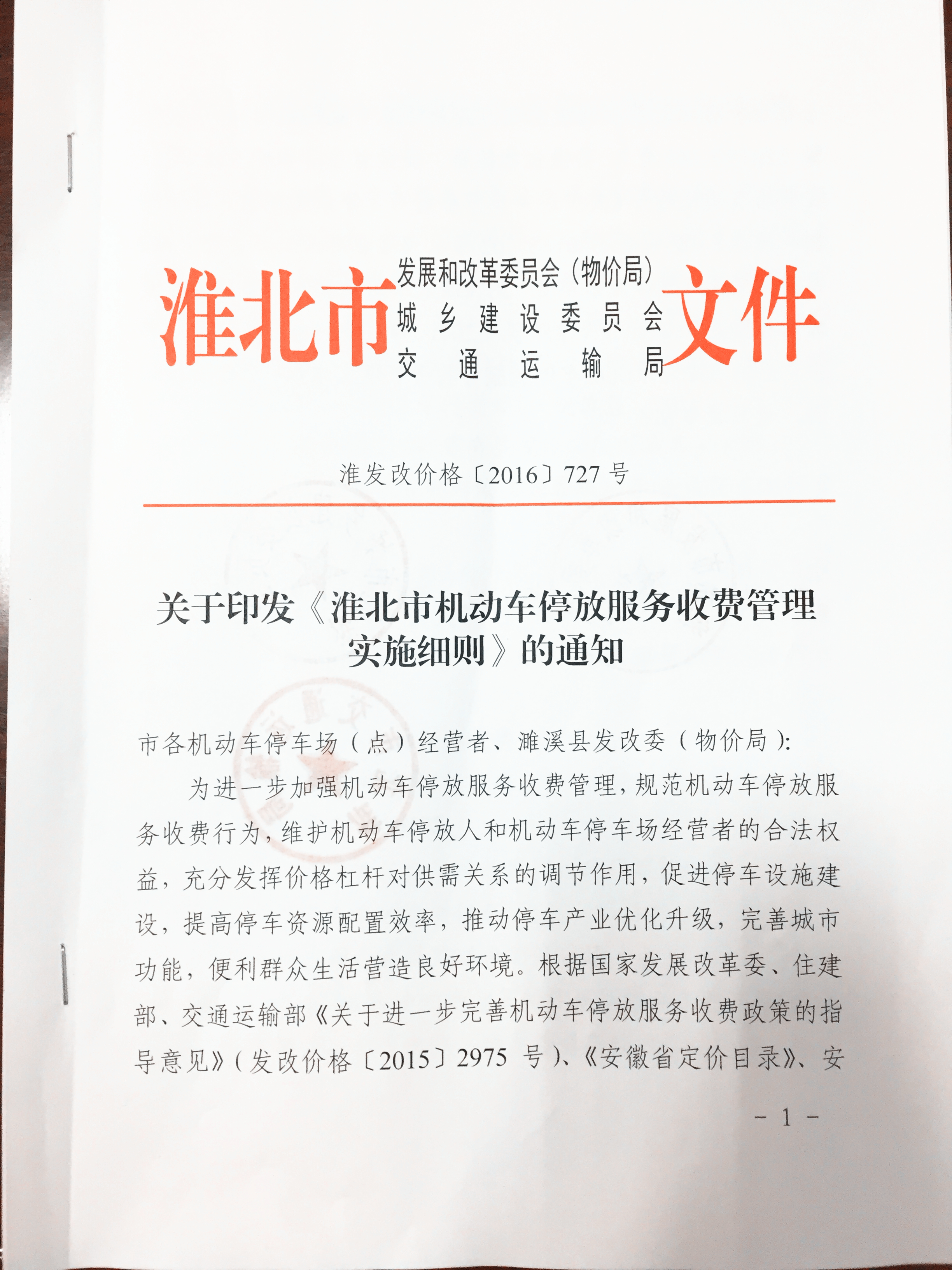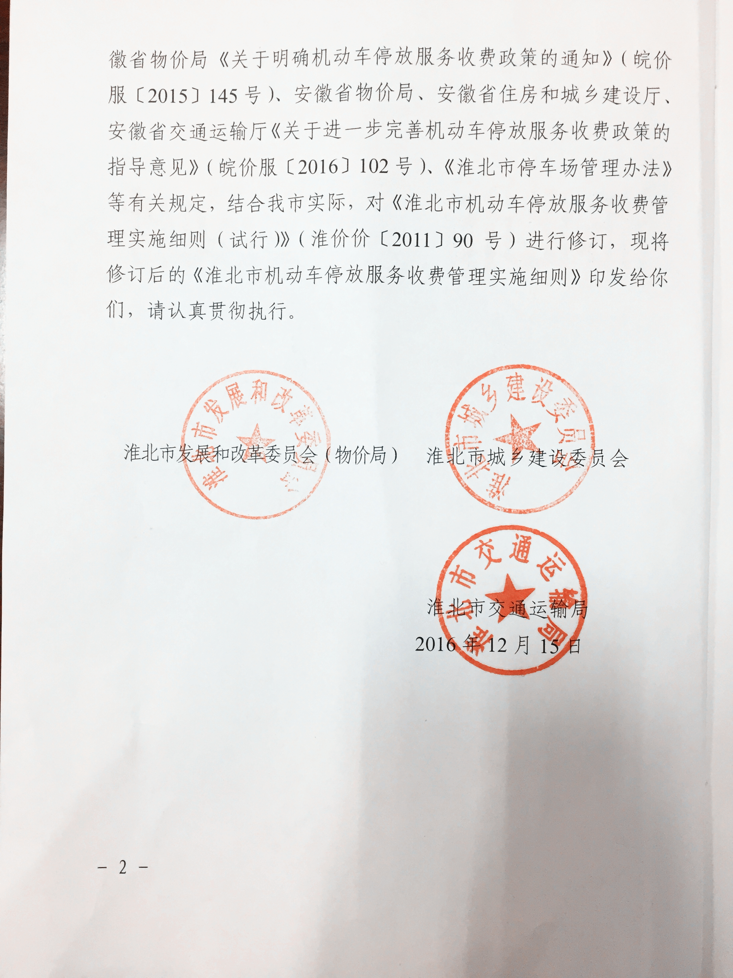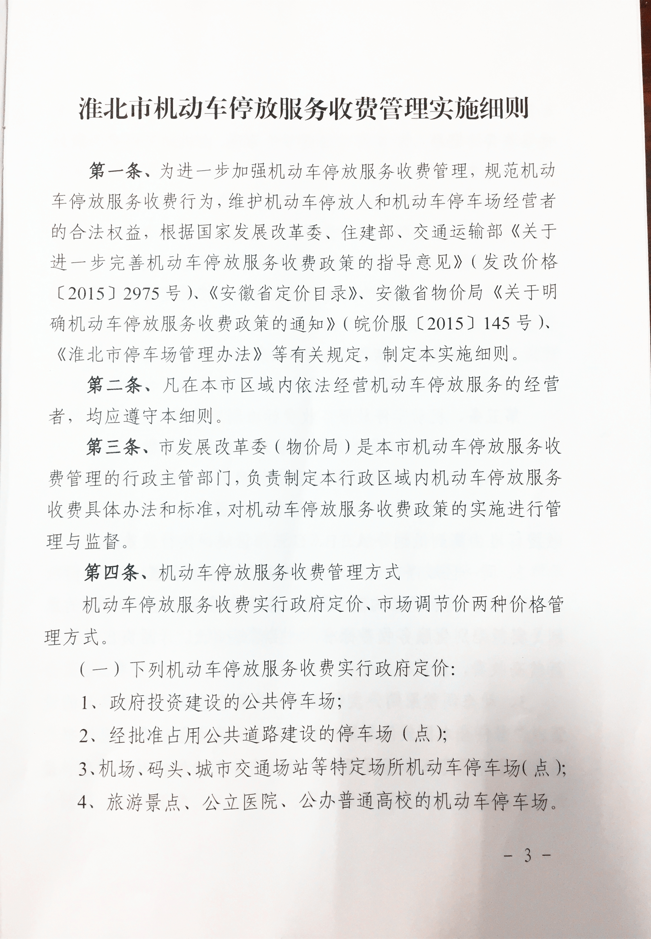 淮北市機(jī)動(dòng)車停放服務(wù)收費(fèi)管理實(shí)施細(xì)則