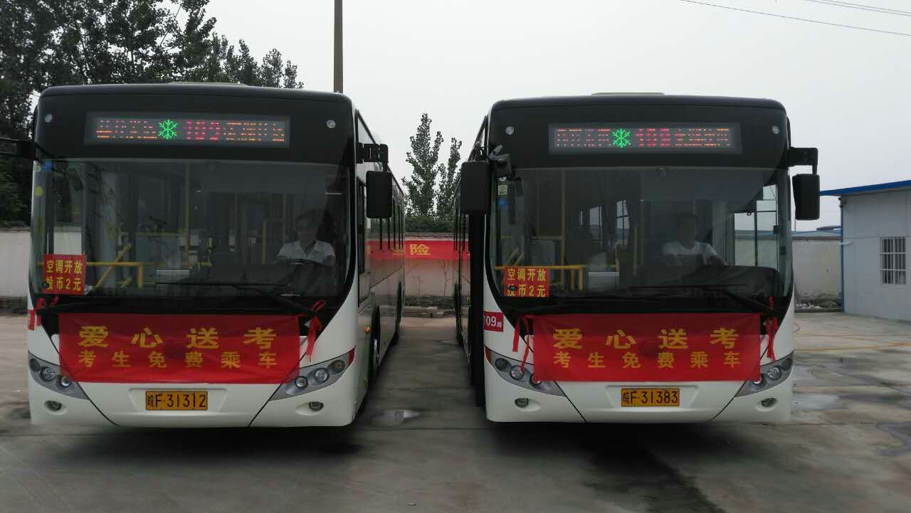 此次愛心送考,公交第二分公司共提供10輛氣電混合新能源公交車,按109路日常運營路線正常行駛,途徑濉溪城關中學、濉溪一中兩個考點,考生及陪同家長可憑借高考準考證免費搭乘。