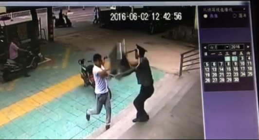 當該男子逃跑至司法局樓下時,又對建行淮東支行進行打砸,我公司派駐隊員劉相迎立刻出門制止,此時楊玉柱也以趕到,兩人合力將該男子制服,并與隨即趕到的派出所民警一同將其押送至東區派出所。
