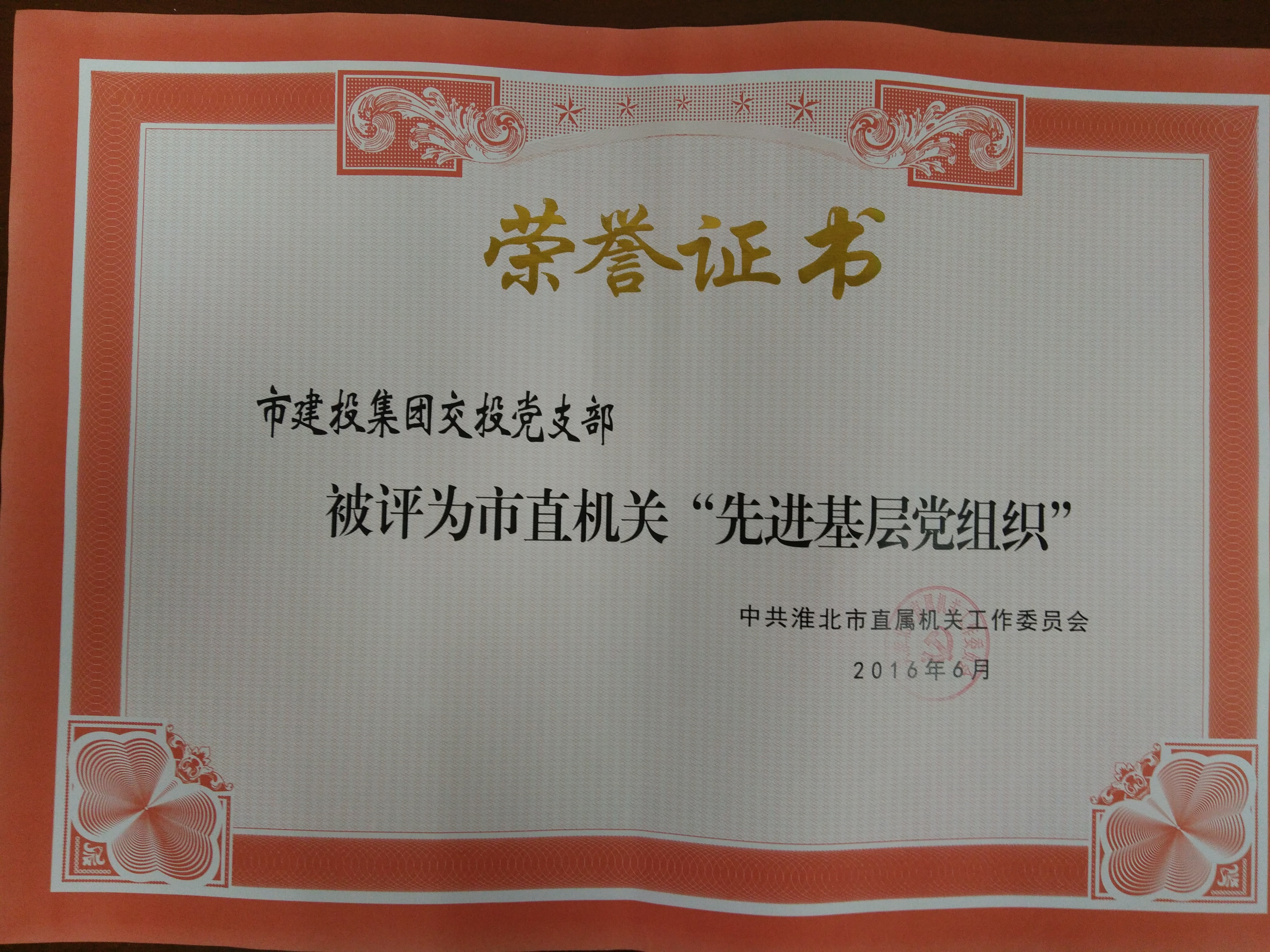 在慶祝中國共產(chǎn)黨成立95周年之際,市交投公司黨支部被授予“2016年度市直機關先進基層黨支部”榮譽稱號。