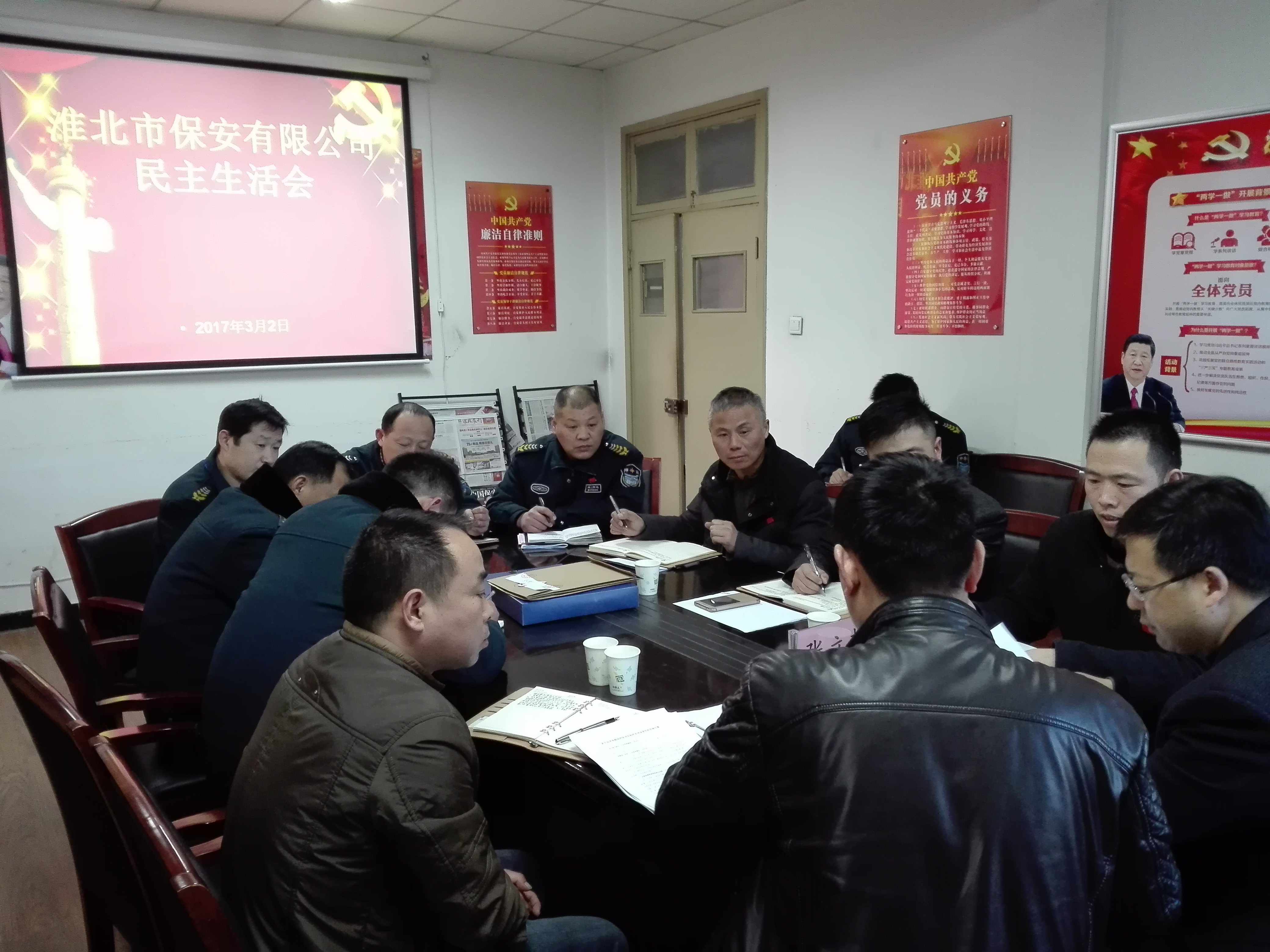 3月2日下午,淮北市保安有限公司在公司二樓會議室召開2017年度保安公司領導班子和黨員領導干部民主生活會,建投集團副總經理張立哲,保安公司領導班子成員,黨支部委員以及黨員干部共20余人參加了會議,會議由黨支部書記李戰備主持,。