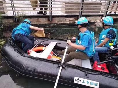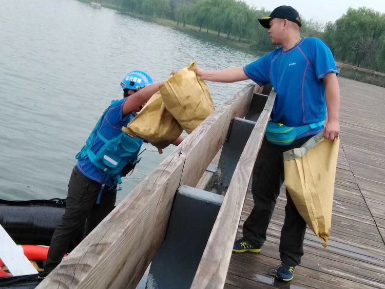 上午9時許,志愿者一行50人冒雨開始撿拾垃圾,鑒于湖面偶有游客灑落的漂浮物,志愿者分為了兩組,一組乘坐皮劃艇清理水面垃圾,一組沿湖邊撿拾岸上垃圾。經過兩個多小時的奮戰,景區里散落的垃圾被裝袋清運,南湖在雨中顯得越發干凈美麗。