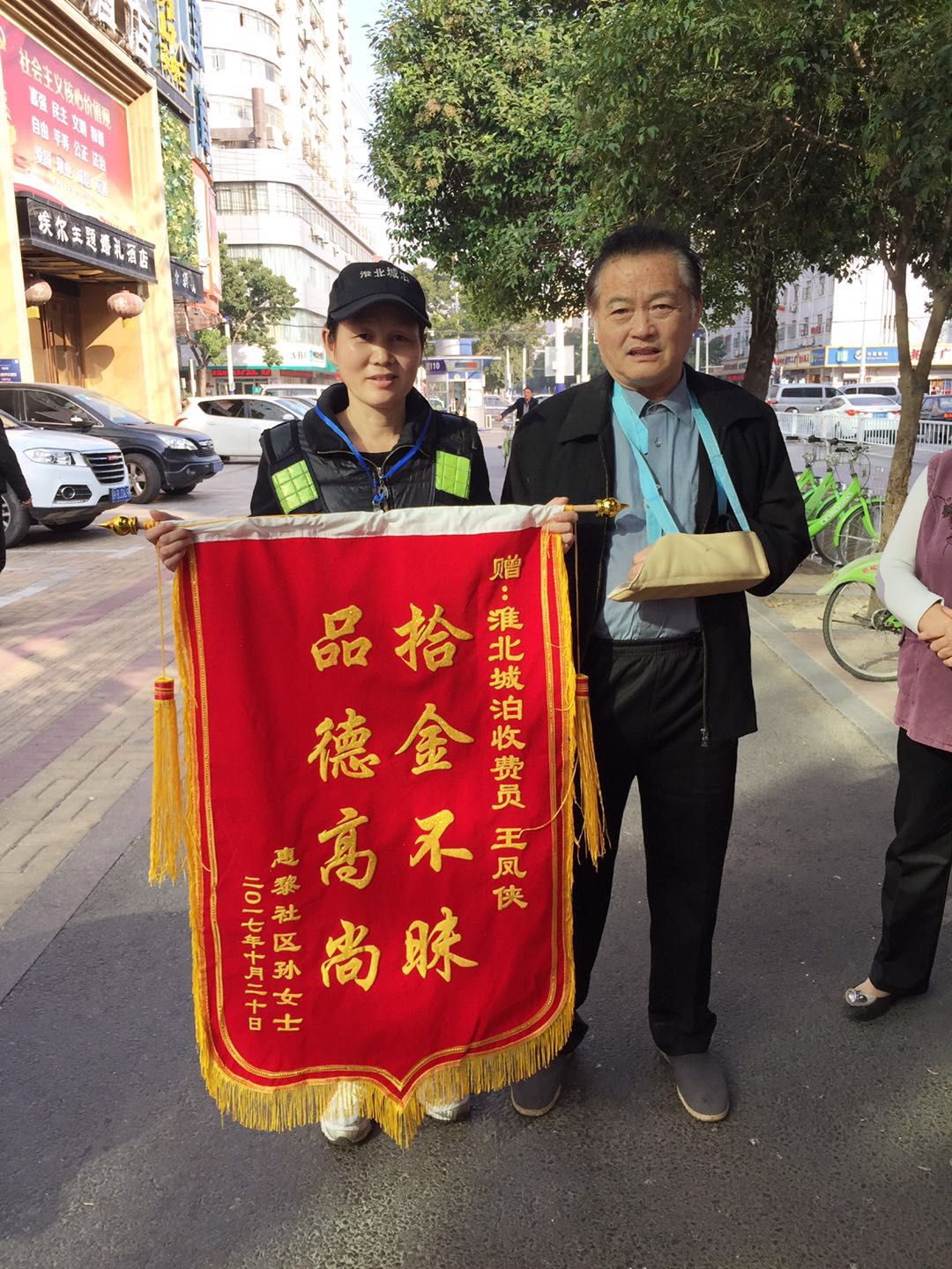 導語:10月31日上午,失主王乃志向淮北城市泊車管理有限公司收費員王鳳俠贈送錦旗,衷心感謝!收費員王鳳俠拾金不昧,我被這位普通的收費員高尚的品質深深感動。