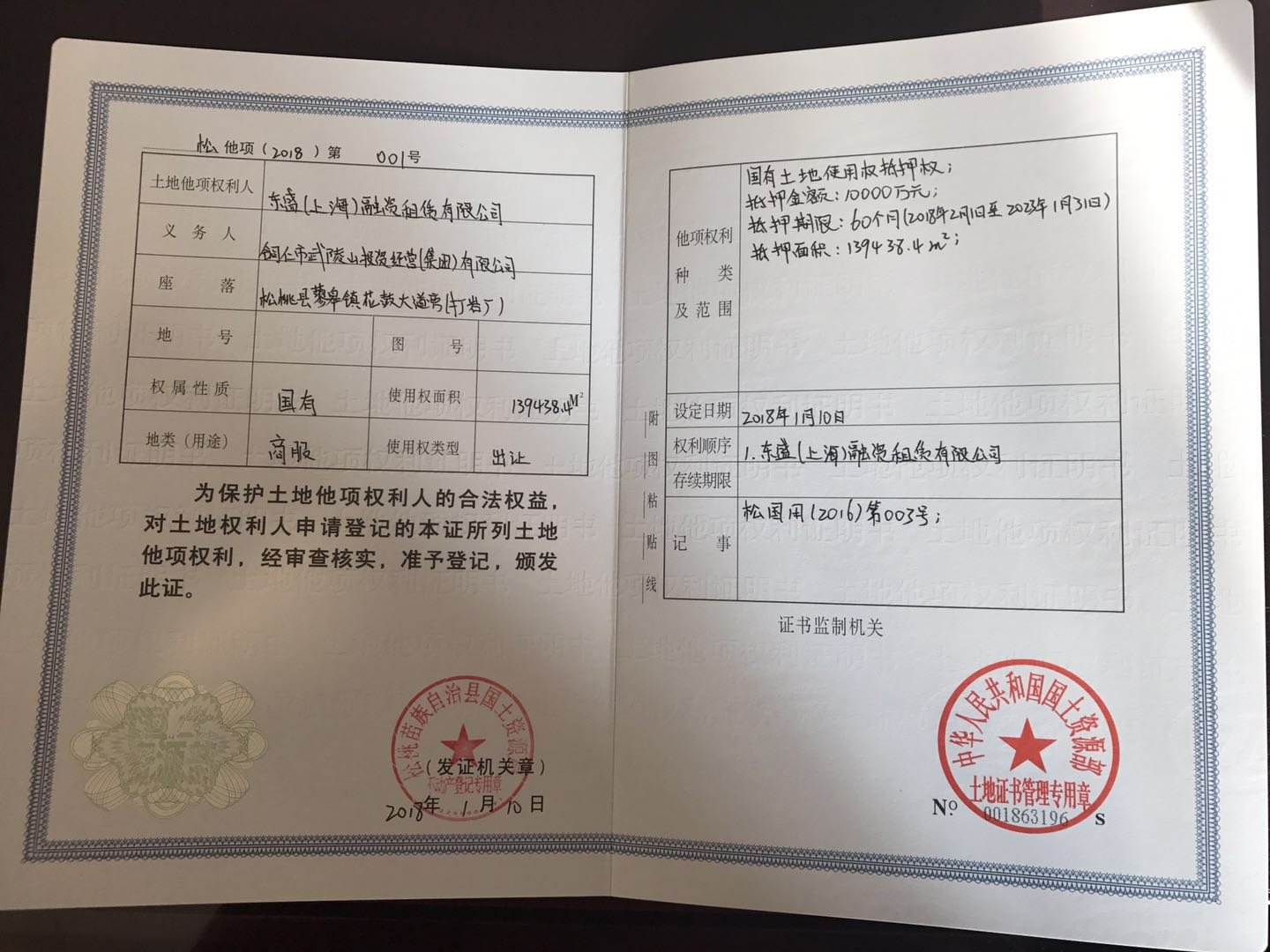 1月12日上午在盡調人員的不懈努力下,松桃縣人民醫院院長順利的簽訂了融資租賃合同及醫療設備所有權轉讓協議,緊接著盡調人員趕往松桃苗族自治縣不動產中心,在武投公司相關工作人員的配合下,對松桃縣打鹽場附近價值2億元的土地辦理了土地抵押手續。