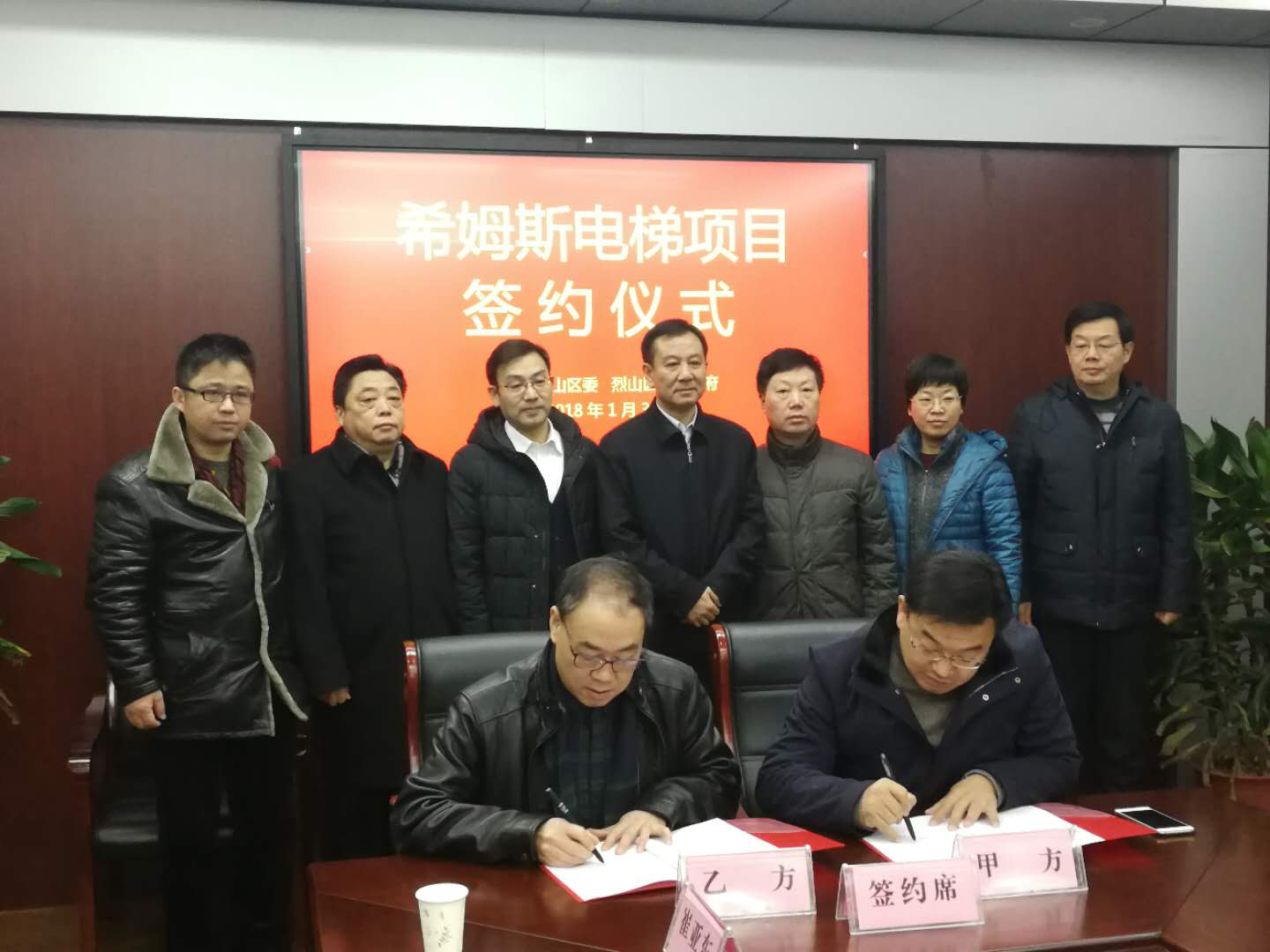 2018年1月30號上午,希姆斯電梯(淮北)有限公司與希姆斯電梯(中國)有限公司在淮北市建投集團簽定了《希姆斯電梯項目簽約協議》。淮北市烈山區區委書記張力、區人大主任陳琳、區長岳軍芝、區委副書記馬建國以及副區長鄧頂宇出席了此次簽約儀式,希姆斯電梯(中國)有限公司CEO龐文岳、市建投集團總經理助理周開宇、希姆斯電梯(淮北)有限公司CEO崔亞東、總經理謝愷以及負責人劉波共同見證了這一歷史性的時刻。