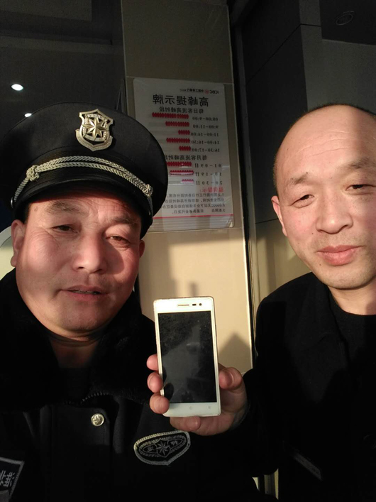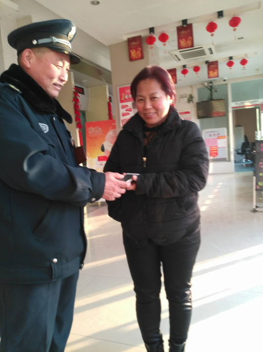 2018年2月7日下午4點,淮北市保安有限公司保安隊員方成亮在工行杜集支行營業大廳值班巡視過程中,發現一部手機遺留在營業室,方成亮發現情況后,主動將手機保管,并逐個詢問前來辦業務的客戶,均無人認領。40分鐘后,失主打此電話,經見面全面核實確認后,將手機歸還失主,失主十分感謝!