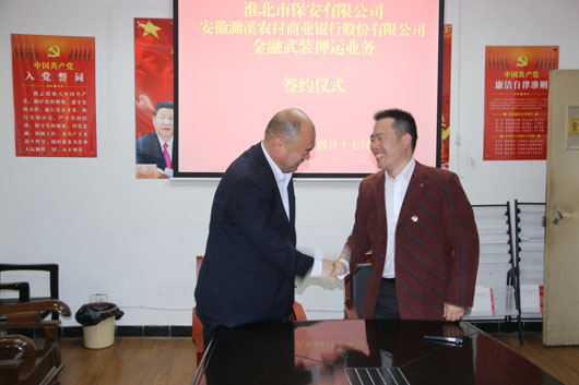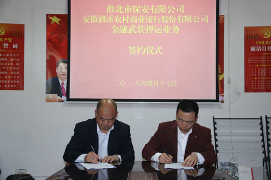 淮北市保安有限公司與安徽濉溪農村商業銀行股份有限公司舉行金融武裝押運業務簽約儀式