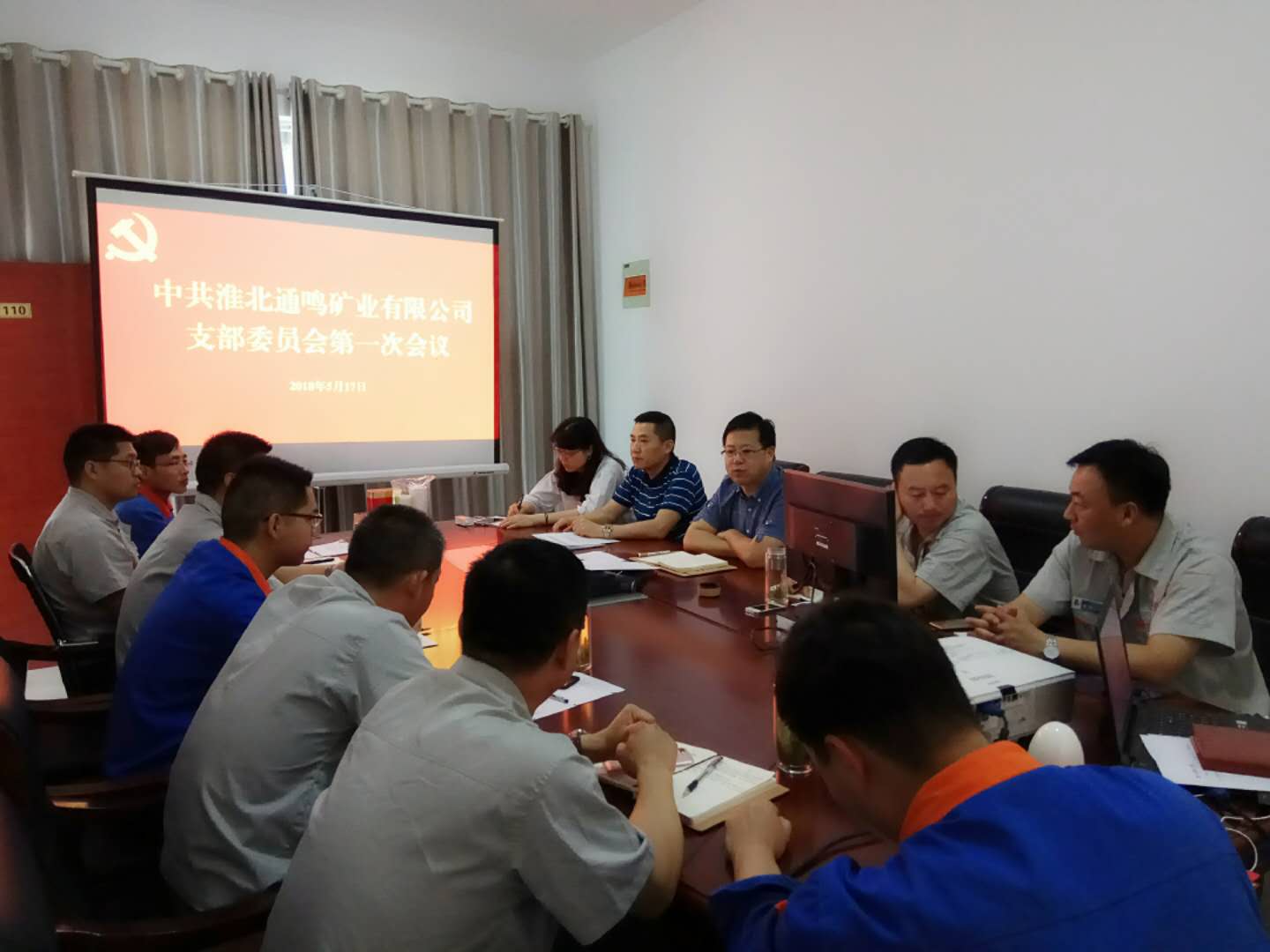 2018年5月17日下午3時,通鳴公司召開中共淮北通鳴礦業有限公司支部委員選舉大會,并選舉產生新一屆的支部委員,新當選的支部委員會委員召開了支部委員會第一次會議。