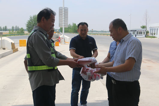 公司領導先后慰問了202淮北收費站、韓村造紙廠、南湖公園,并給他們送去了防暑降溫物品。黨支部書記與隊員親切握手,詳細詢問工作、生活情況,并叮囑戰斗在一線的員工,在高溫天氣下,注意身體健康,工作的同時預防中暑。激勵廣大員工努力拼搏奮斗、攜手共進,與公司一同創造美好的未來!