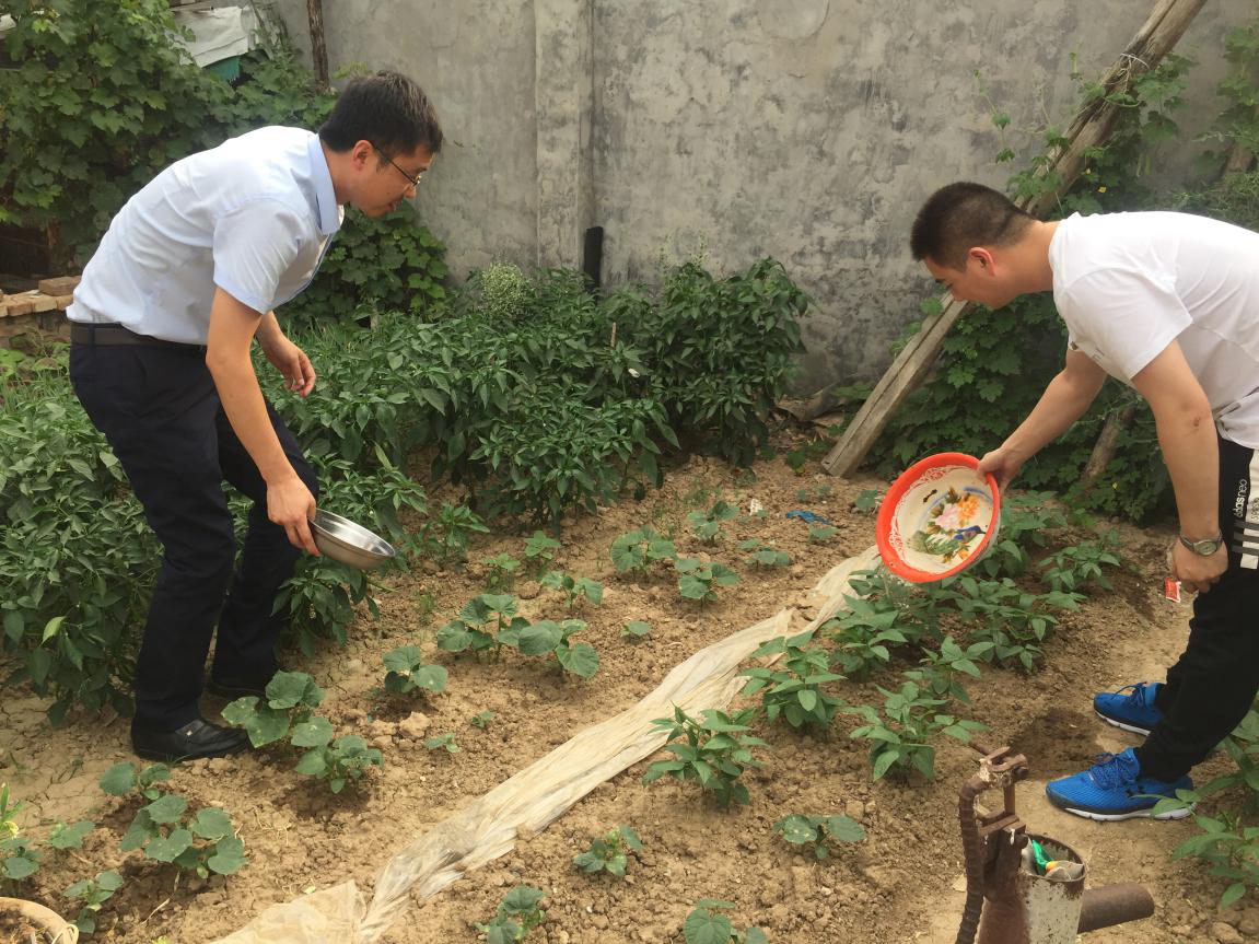 天氣炎熱,幫扶小組囑咐王心及其妻子保護身體,注意防暑降溫,并為其打掃庭院,灌溉院內菜地。