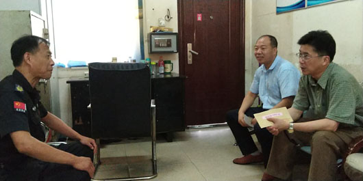 在中國共產黨成立97周年之際,7月13日上午,集團公司黨委委員、紀委書記王獻忠在淮北市保安有限公司黨支部書記、副書記的陪同下來到押運一中隊看望慰問生活困難的老黨員,送去黨組織的關懷和溫暖。他要求各級黨組織要懷著深厚感情,用心用情為困難老黨員排憂解難,讓廣大老黨員和困難黨員切實感受到黨組織的關懷與溫暖。