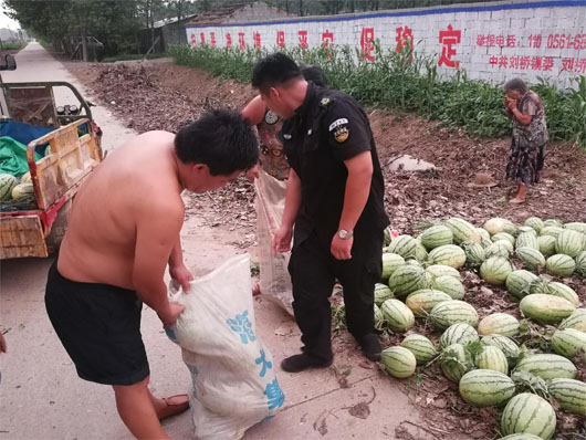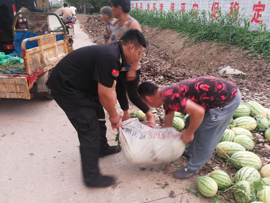 氣象部門預報,“溫比亞”即將來襲。8月12日上午,保安公司扶貧小組火速至火神廟李桂蘭家中進行了解暴風雨來臨前的預防工作,得知李桂蘭家庭種植一萬余斤西瓜至今未收,在了解情況后,扶貧小組針對李桂蘭家中缺少勞動力等情況,立即組織人員對西瓜進行激烈的搶收工作,經過保安隊員緊張激烈的搶收,終于在暴風雨來臨之前完成搶收工作,并以單位名義和發動員工方式,以市場價幫助購銷西瓜,直接為李桂蘭家庭挽回經濟損失一萬余元。