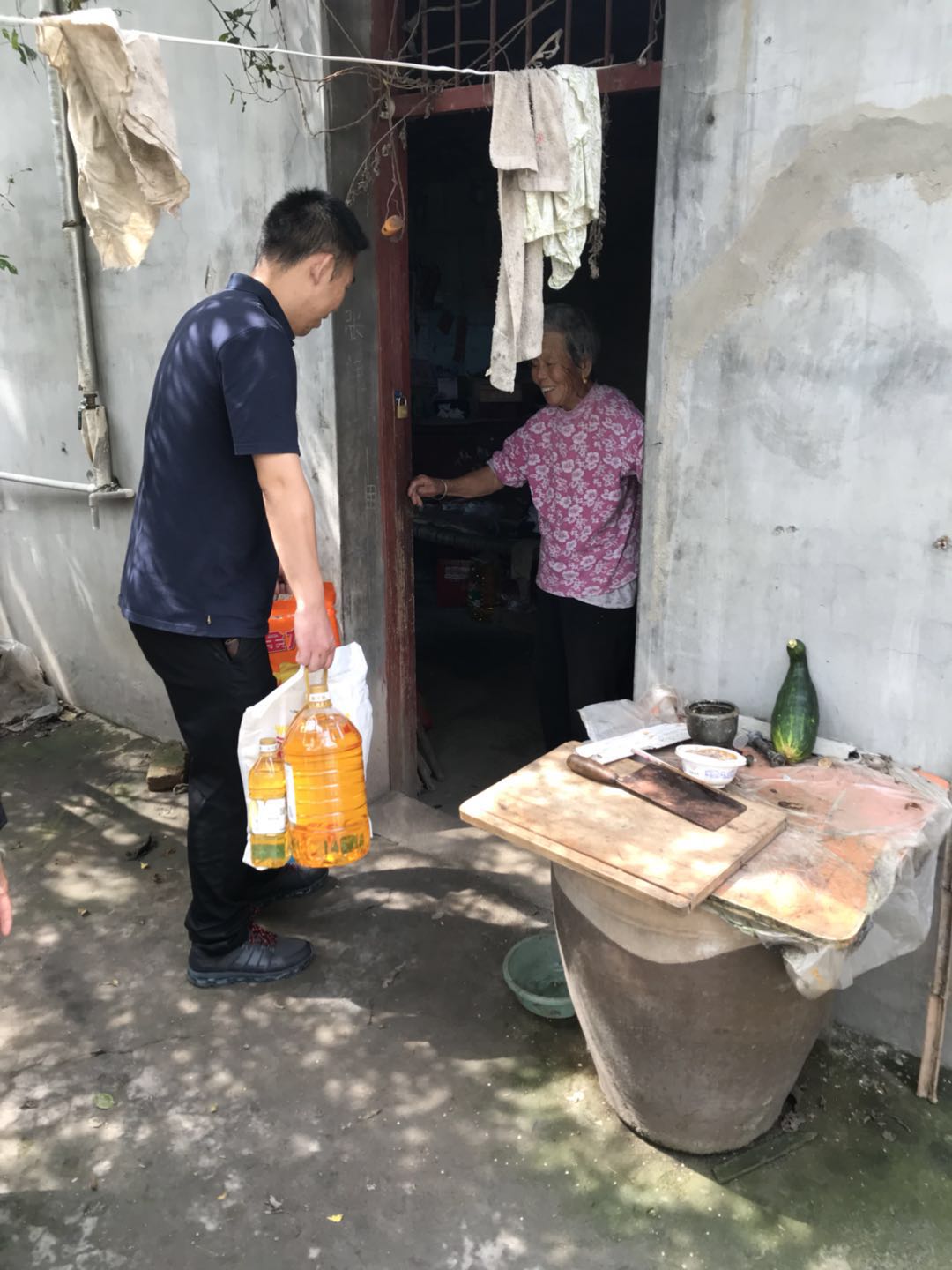 中秋來臨之際,家家忙團圓。為貫徹黨和國家對貧困人員的方針政策,彰顯社會主義的優越性,東盛公司采購了過節所需的米、面及食用油,送至黃張氏家中。黃張氏對于東盛公司幫扶小組成員的到來表示熱烈歡迎。
