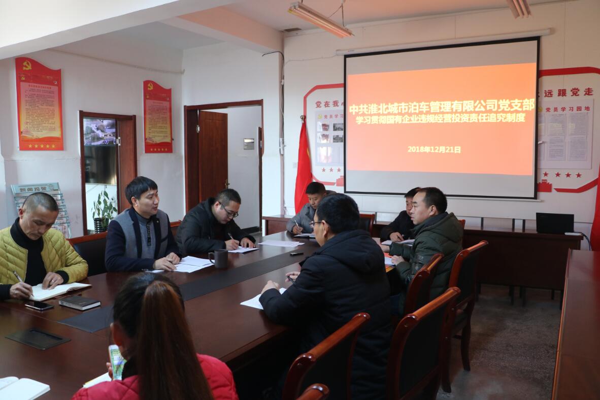 2018年12月21日,城泊公司組織黨員干部認真學習了《國務院辦公廳關于建立國有企業違規經營投資責任追究制度的意見》。