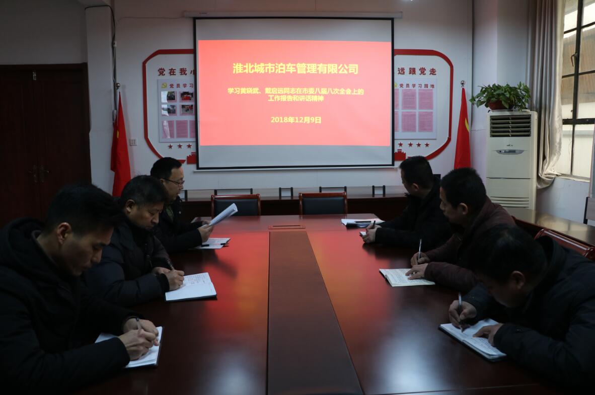 2019年1月9日上午,城泊公司組織機關員工認真學習傳達了黃曉武、戴啟遠同志在市委八屆八次全會上的工作報告和講話精神。