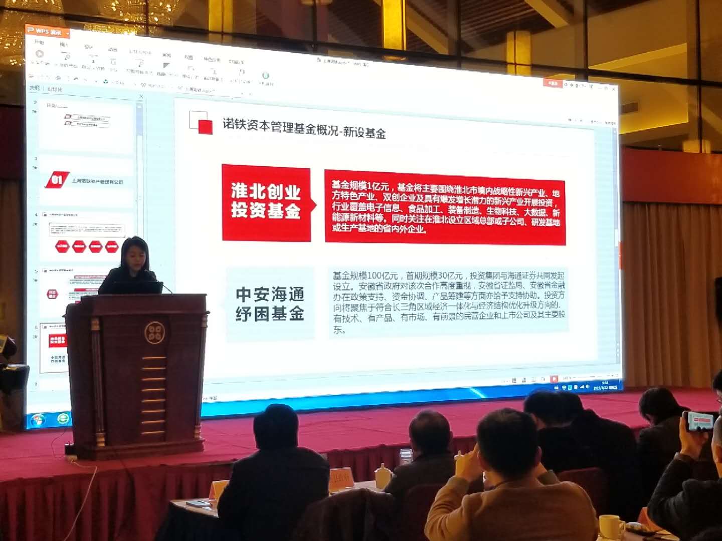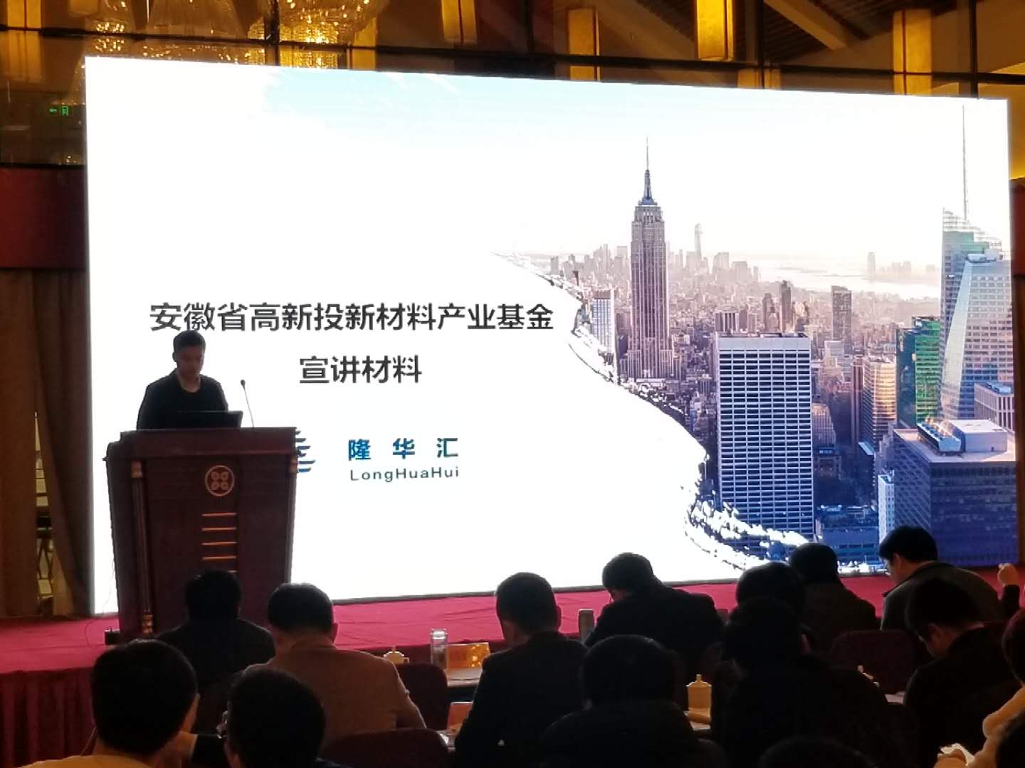 在會議宣講環節,首先由安徽省高新技術產業投資有限公司黨委委員、副總經理陳昌勝介紹省投資集團與淮北市股權投資基金等戰略合作情況,然后淮北市創業投資基金、安徽省高新投新材料投資基金、淮北市成長型中小企業基金三只基金的基金管理人代表分別對基金進行宣講。