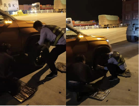 10月23日深夜,一輛外地牌照轎車在經過S202收費站時突然停在了收費廣場不遠處無法啟動,造成我站收費通道擁堵,當班收費三班班長湯雪峰發現后立即上前查看情況,從司機那里得知是被路邊晾曬農作物的農具扎破了輪胎,因擔心繼續強行行駛造成安全隱患,當班班長湯雪峰立即組織組員幫助司機推行車輛至站廣場,同時,有修車經驗的收費員拿來站內便民修車工具幫助司機更換輪胎,大約經過一小時的搶修幫助司機重新換好了輪胎,在司機的感謝聲中,收費員們又從新踏上了工作崗位。