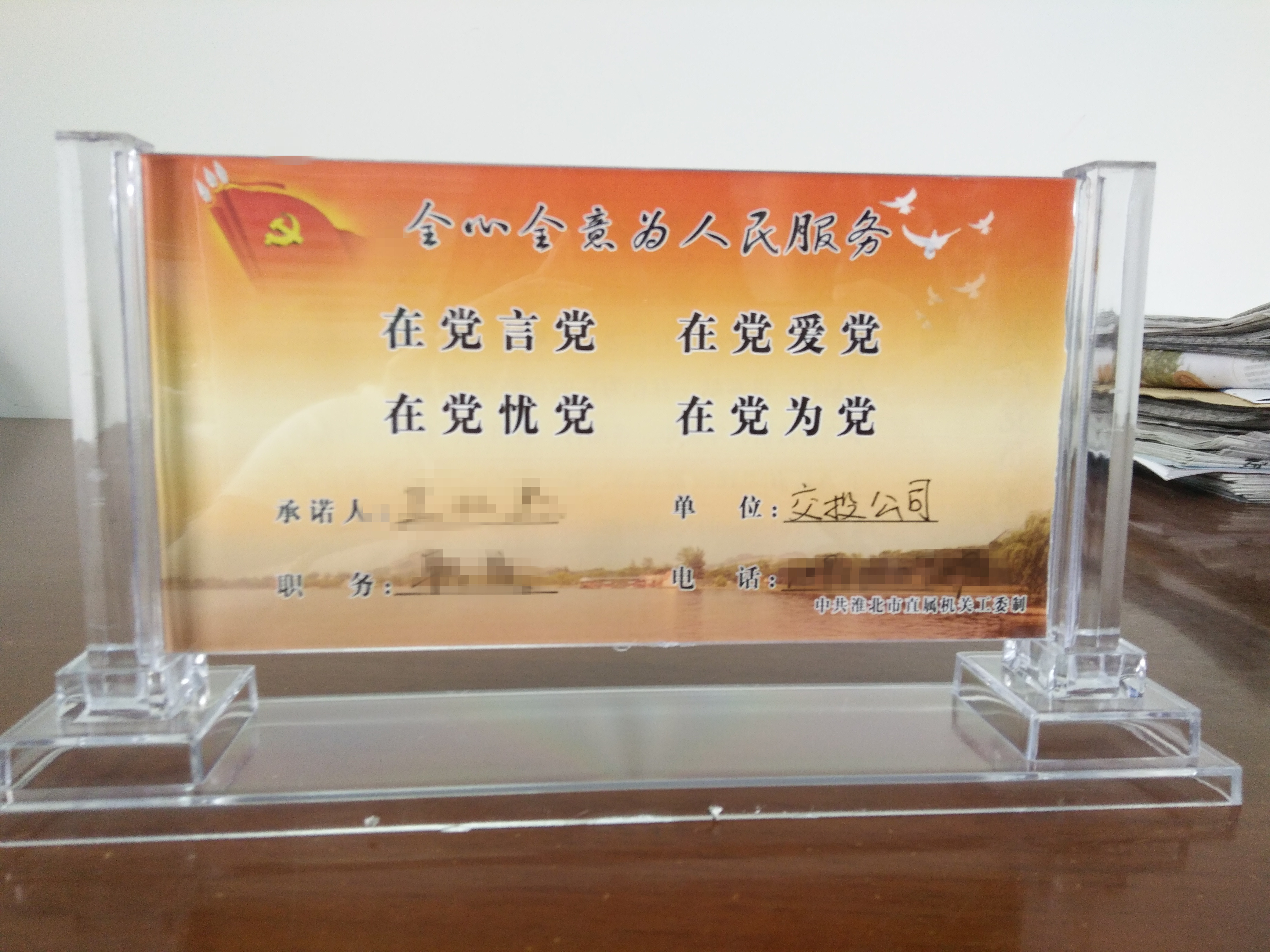 交投黨支部積極響應(yīng)集團(tuán)公司“亮身份、踐承諾、爭(zhēng)當(dāng)優(yōu)秀共產(chǎn)黨員”活動(dòng)號(hào)召,組織支部全體黨員配戴黨徽,在辦公桌擺放承諾席卡,認(rèn)真填寫黨員公開(kāi)承諾書(shū)等,并將承諾書(shū)在市交投公司“兩學(xué)一做”宣傳欄展出。