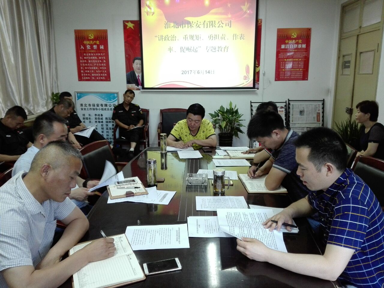 黨支部書記李戰(zhàn)備同志作總結性發(fā)言。指出,把“講政治、重規(guī)矩、勇擔責、作表率、促崛起”排在“四講四有”的首位,凸顯了黨員必須樹立堅定的正確政治方向、堅定的崇高理想信念。講政治,認為就是要對黨絕對忠誠,聽黨話、跟黨走。這是講政治的首要原則。李戰(zhàn)備同志強調,各位黨員要認真落實這次組織生活會的主題要求,主動適應全面從嚴治黨新要求,做一名好干部、好黨員,在各自的崗位上,凝心聚力、開拓創(chuàng)新、把好審批權力關,提增服務技能,爭當服務的表率,實現先鋒引領,做一名合格的共產黨員,為淮北市保安有限公司黨建工作和公司發(fā)展做出應有的貢獻。