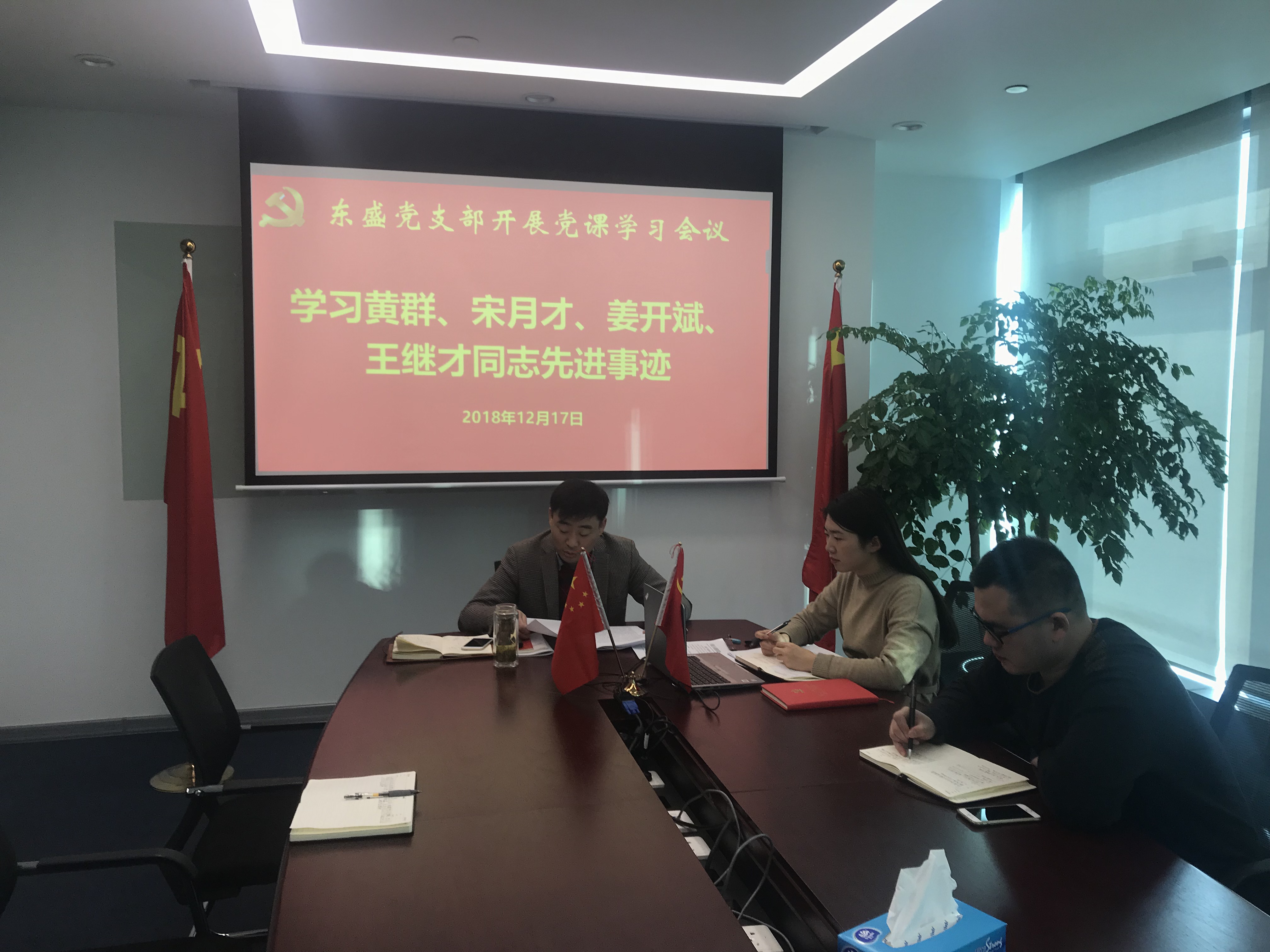 2018年12月17日上午,在王智同志的組織下,東盛黨支部通過(guò)開(kāi)展黨課學(xué)習(xí)形式,認(rèn)真宣傳學(xué)習(xí)了黃群、宋月才、姜開(kāi)斌、王繼才同志的先進(jìn)事跡和崇高精神,通過(guò)對(duì)他們先進(jìn)事跡的學(xué)習(xí),我支部全體黨員及員工無(wú)不深受感動(dòng),衷心佩服。