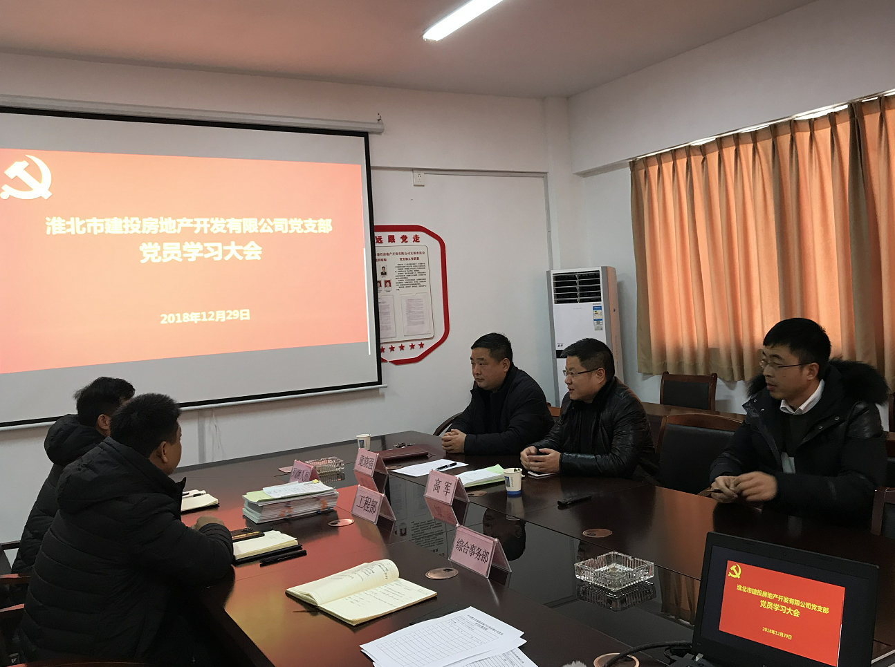 2018年12月29日下午,房地產(chǎn)公司召開支部學(xué)習(xí)會(huì),學(xué)習(xí)傳達(dá)全國全省國有企業(yè)黨的建設(shè)工作會(huì)議精神。