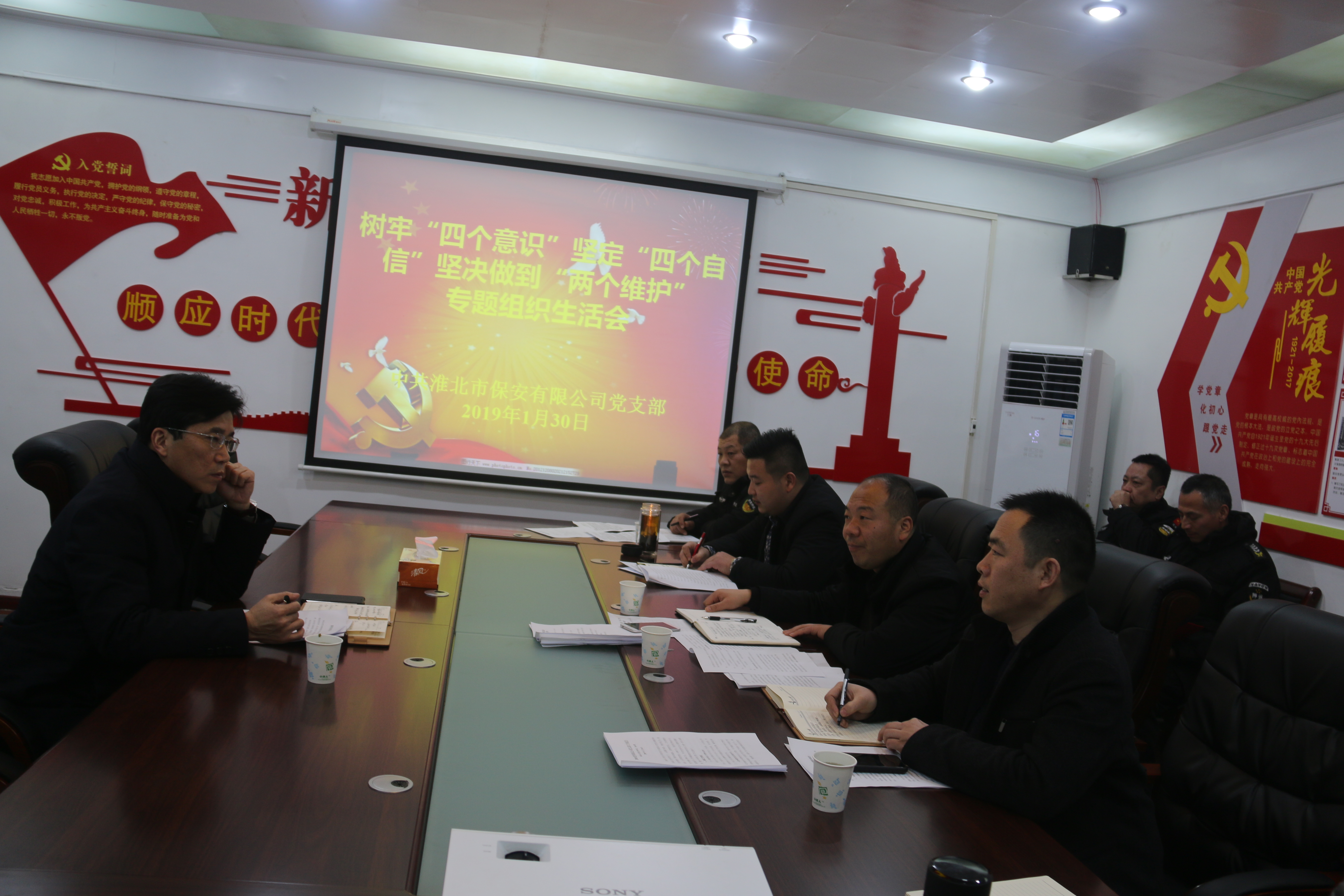 1月30日下午,淮北市保安公司黨支部召開了2018年度樹牢“四個(gè)意識(shí)”,堅(jiān)定“四個(gè)自信”,堅(jiān)決做到“兩個(gè)維護(hù)”專題組織生活會(huì)。集團(tuán)公司黨委委員、紀(jì)委書記王獻(xiàn)忠以普通黨員的身份參加了會(huì)議,會(huì)議由保安公司黨支部書記余永明主持。