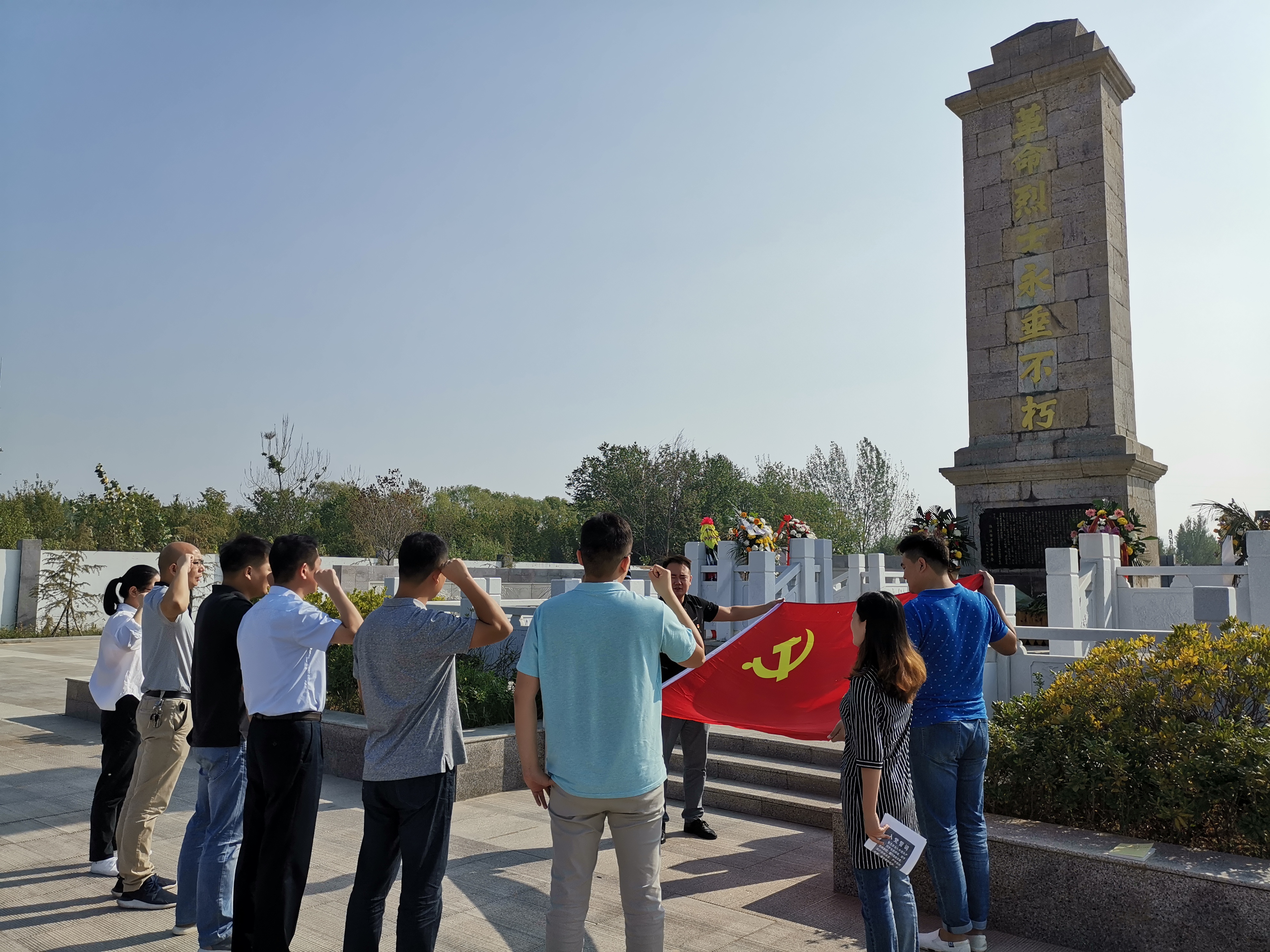 9月30日為烈士紀(jì)念日,商貿(mào)公司黨支部在小朱莊烈士陵園舉行“不忘初心,牢記使命”紅色革命傳統(tǒng)教育,支部黨員及積極向黨組織靠攏的同志參加活動(dòng)。