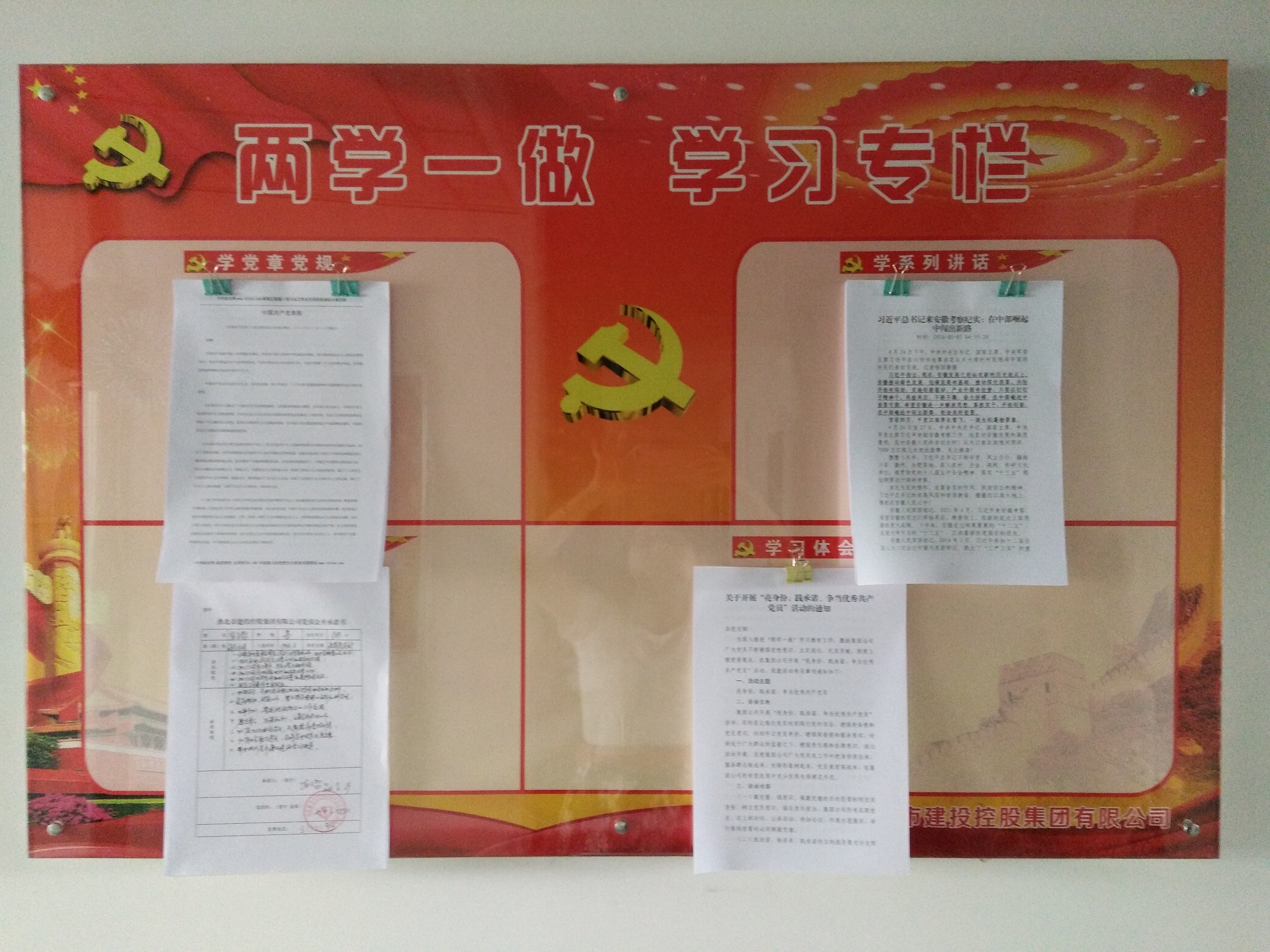 交投黨支部積極響應集團公司“亮身份、踐承諾、爭當優(yōu)秀共產(chǎn)黨員”活動號召,組織支部全體黨員配戴黨徽,在辦公桌擺放承諾席卡,認真填寫黨員公開承諾書等,并將承諾書在市交投公司“兩學一做”宣傳欄展出。