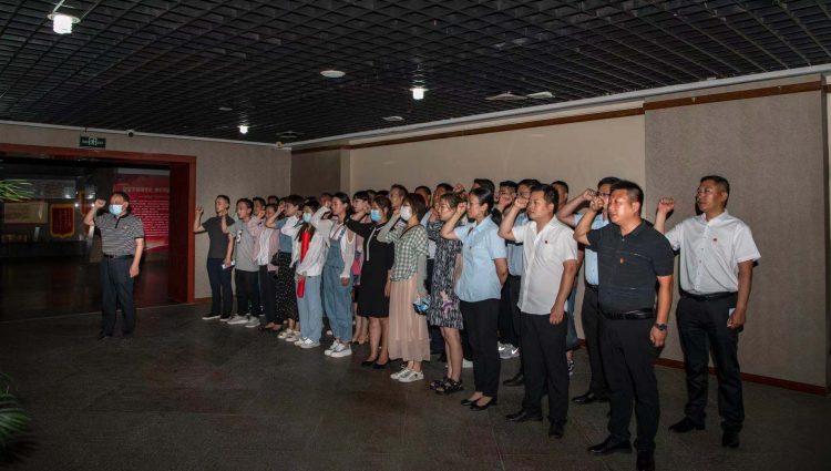 為慶祝中國(guó)共產(chǎn)黨成立100周年,傳承紅色基因,汲取革命力量。6月30日下午,中心湖帶黨總支在黨總支書記林曉海同志的帶領(lǐng)下前往淮北市博物館——建黨百年 淮北足跡,慶祝中國(guó)共產(chǎn)黨成立100周年主題展,開展“學(xué)黨史 守初心 踐使命”主題黨日活動(dòng),林曉海同志組織舉行新黨員入黨宣誓儀式,結(jié)合過(guò)“政治生日”開展黨員重溫入黨誓詞活動(dòng),進(jìn)一步激勵(lì)黨員牢記誓言,不忘初心,勇?lián)姑?,始終保持先進(jìn)本色。黨總支全體黨員共計(jì)45人參加活動(dòng)。