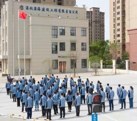 淮海建工公司黨總支努力將紅色基因根植于每名黨員干部心中,每月初組織全體黨員干部舉行升旗儀式。5月6日上午九時(shí),在雄壯的國(guó)歌聲中,鮮艷的五星紅旗伴隨朝陽(yáng)緩緩升起,迎風(fēng)飄揚(yáng),莊嚴(yán)的升國(guó)旗儀式感染著現(xiàn)場(chǎng)每一名淮海建工人。在升旗儀式現(xiàn)場(chǎng),同時(shí)舉行公司月度生產(chǎn)經(jīng)營(yíng)表彰會(huì)議,總結(jié)生產(chǎn)經(jīng)營(yíng)工作并評(píng)選表彰月度優(yōu)秀項(xiàng)目部、優(yōu)秀部室及優(yōu)秀員工,頒發(fā)榮譽(yù)證書。旗手由優(yōu)秀員工擔(dān)任,優(yōu)秀代表在國(guó)旗下發(fā)言,通過(guò)這些環(huán)節(jié),結(jié)合黨史學(xué)習(xí)教育,鼓勵(lì)號(hào)召全體黨員干部,立足自身崗位,“實(shí)”當(dāng)頭,“干”為先,用汗水澆灌成長(zhǎng),用實(shí)干篤定前行,積極投身公司發(fā)展大業(yè),以優(yōu)異成績(jī)獻(xiàn)禮建黨100周年。